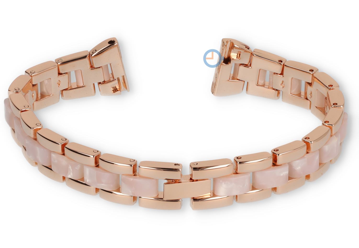 Een trendy horlogebandje in de stijl van Michael Kors en DKNY, gemaakt van roestvrij staal gecombineerd met gekleurd resin. Geef jouw horloge de finishing touch met dit horlogebandje uit onze Private label-collectie.