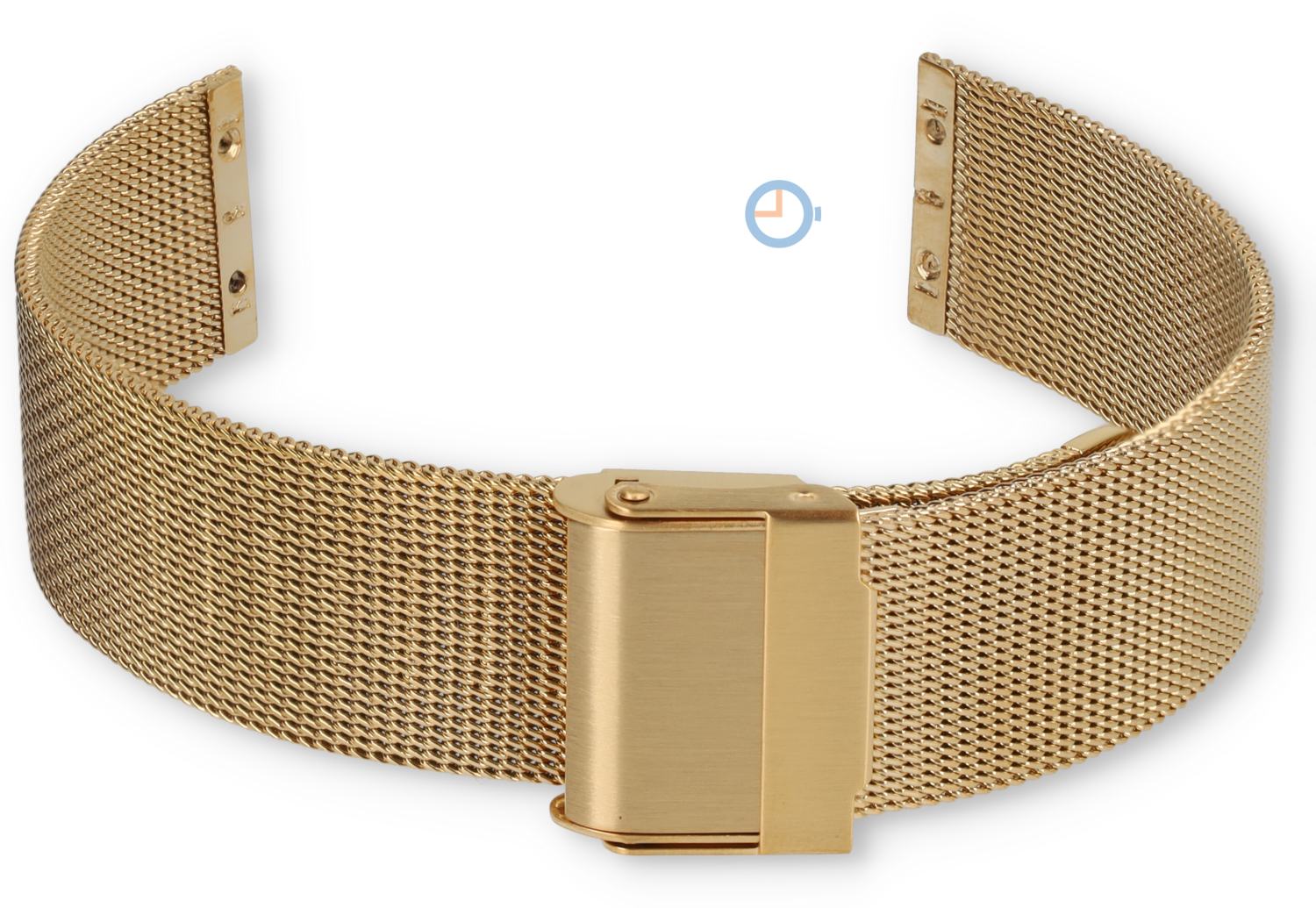 Deze Bering horlogeband heeft een lengte van maximaal 170mm en minimaal 110mm (exclusief horlogekast), een breedte van 18mm en wordt bevestigd met schroeven (niet inbegrepen). Je vervangt je horlogeband gemakkelijk zelf met deze schroevendraaier. Zowel de band als de sluiting zijn goud van kleur en het materiaal is volledig RoHS-gecertificeerd.
