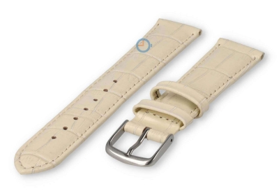 Alternatief horlogebandje voor Rosefield horloge - 18mm - creme. Eenvoudig luxe horlogebandje in effen kleur. De horlogeband heeft een kalfsleder nubuk onderkant voor het ultieme draagcomfort. Dit universele bandje van echt leer is 18mm breed en loopt terug naar 16mm. Je ontvangt dit leren bandje inclusief de roestvrijstalen gespsluiting in zilverkleur.