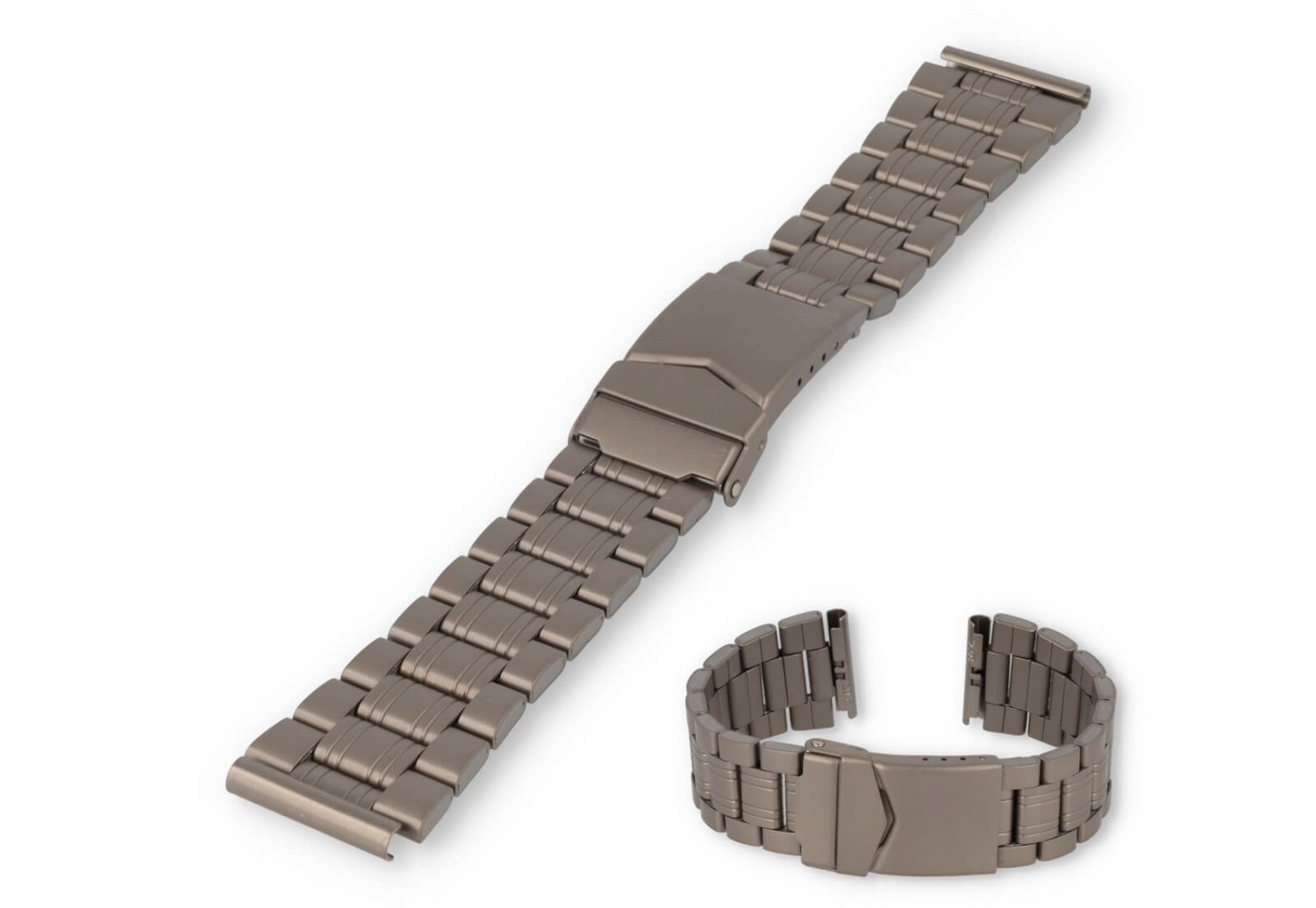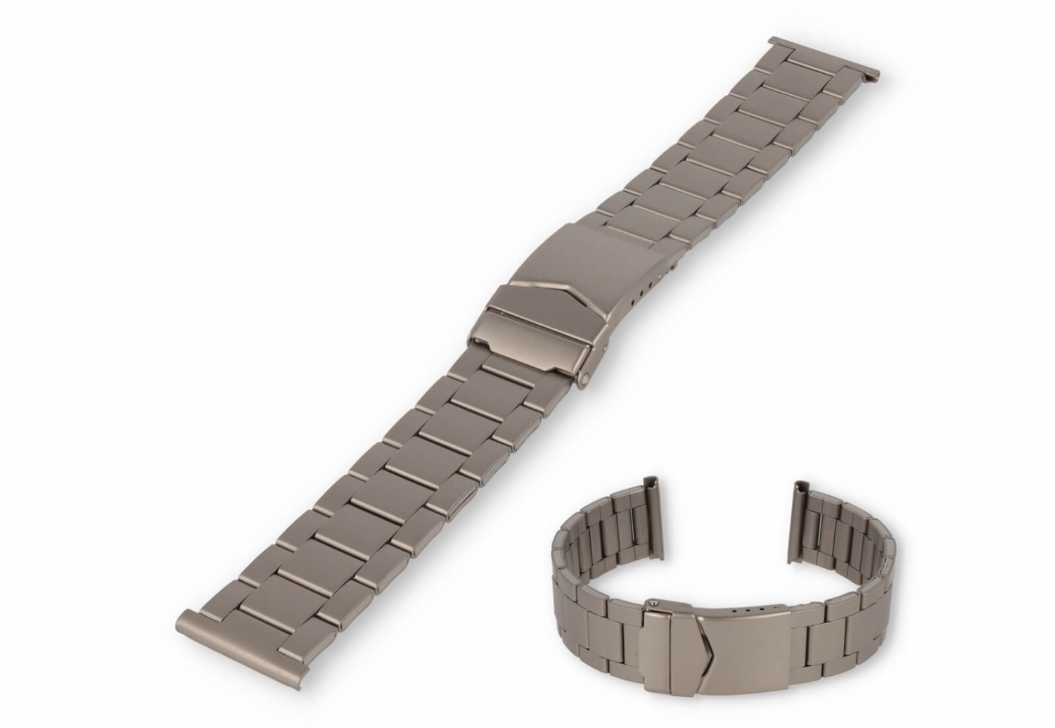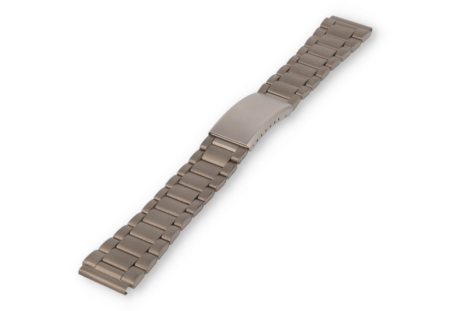 Een sterke en huidvriendelijke horlogeband met matte afwerking en makkelijke vouwsluiting. De geschakelde band kan je perfect op maat maken, doordat een aantal schakels verwijderbaar zijn.