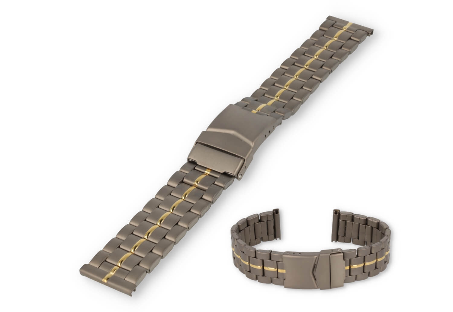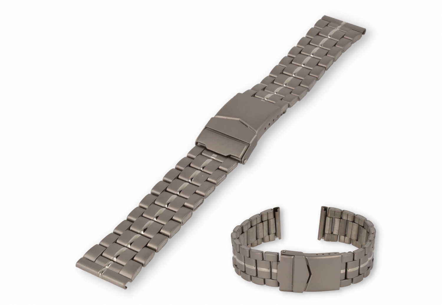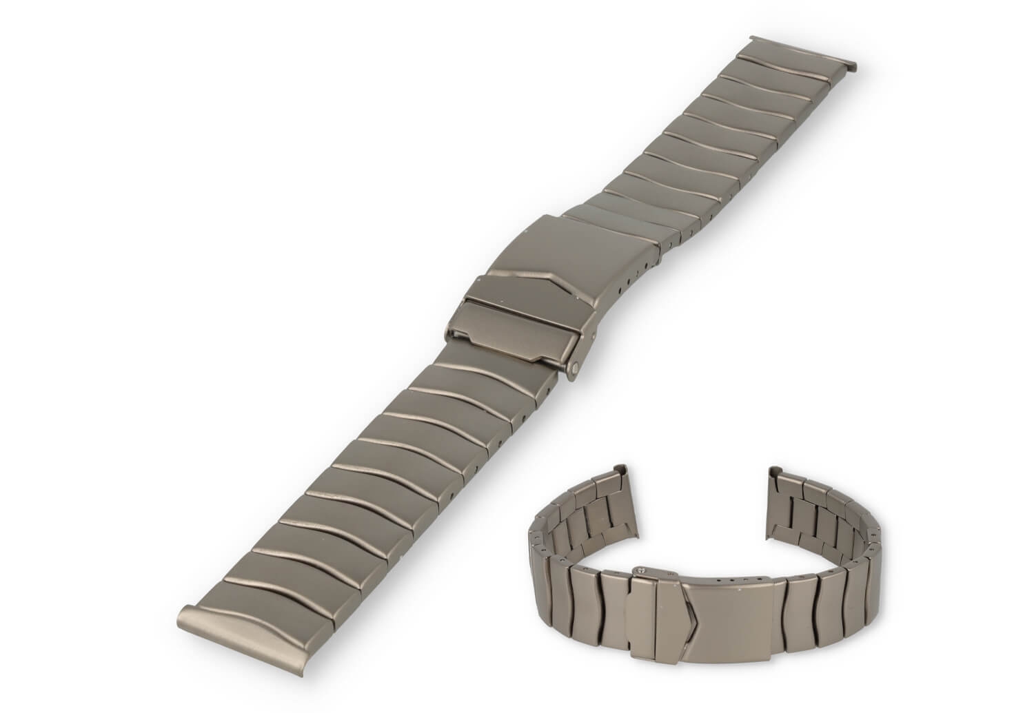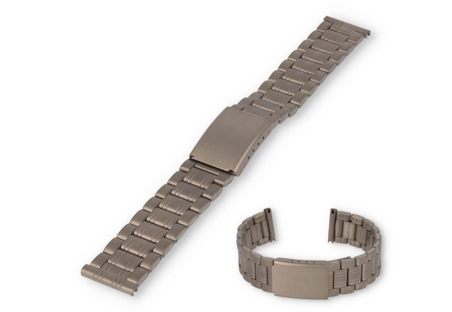 Een sterke en huidvriendelijke horlogeband met matte afwerking en makkelijke vouwsluiting. De geschakelde band kan je perfect op maat maken, doordat een aantal schakels verwijderbaar zijn.