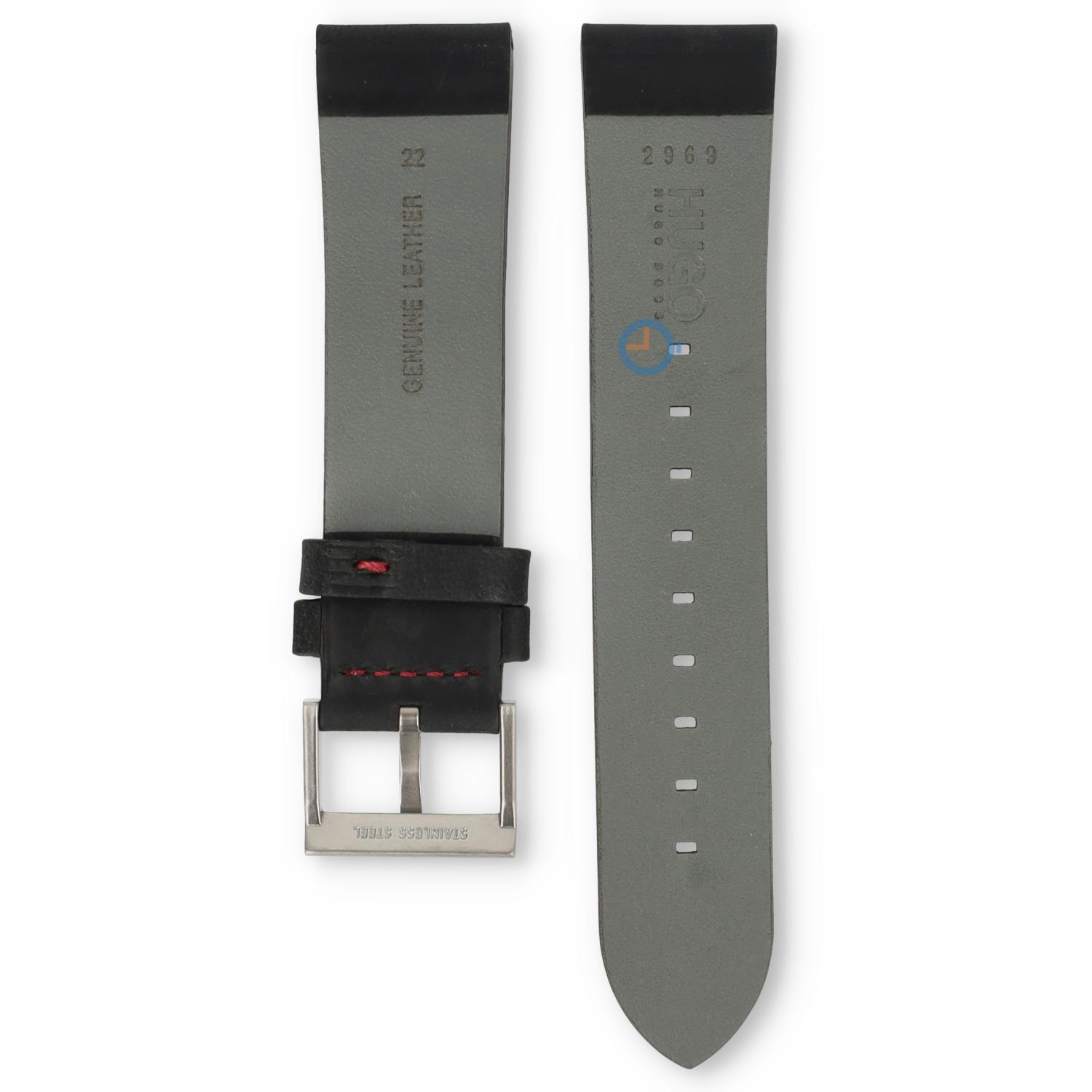 Origineel Hugo Boss 22mm leren bandje - zwart - HB1530082. Dit horlogebandje heeft een universele aanzet, dat betekent een rechte start. Daarom past dit bandje op alle Hugo Boss horloges met een rechte 22mm bandbreedte. De band wordt geleverd inclusief originele gesp.
