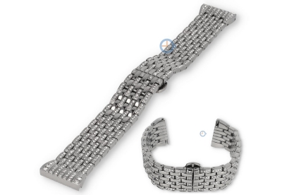 Deze gave horlogeband past op alle horloges met een rechte aanzet van: 22mm. De volledige band, incl. schakels en sluiting zijn van roestvrij, kleurvast staal.