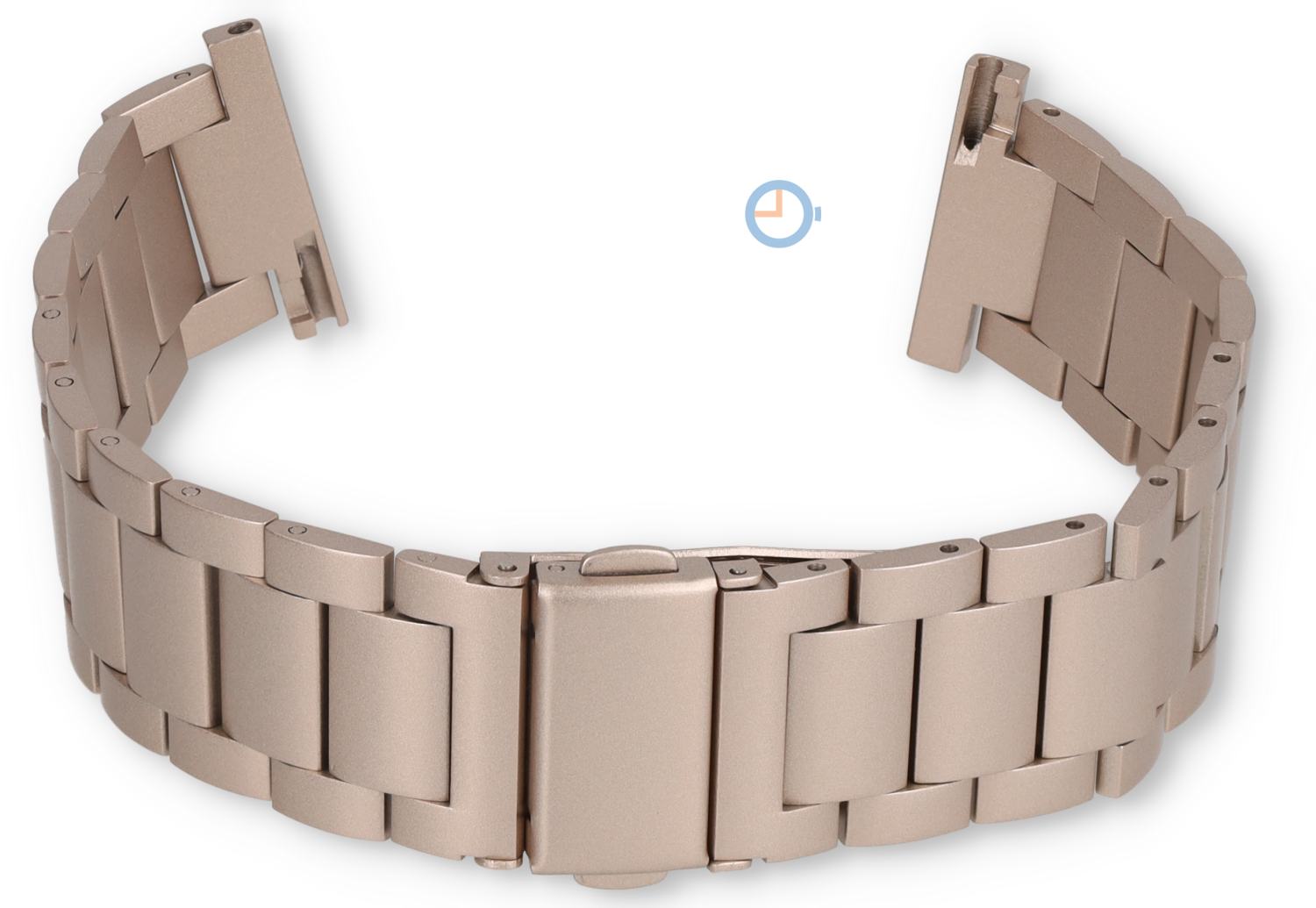 Met een lengte van 180mm (exclusief horlogekast) en 8 verwijderbare schakels is de band op bijna elke maat te maken. De matte afwerking geeft de band een rustige en moderne uitstraling. Dankzij de vouwsluiting met drukknoppen zit de band stevig en comfortabel om je pols.