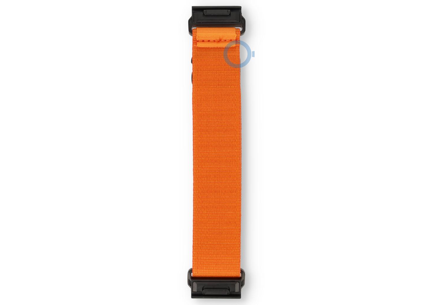 Alpine horlogeband: Ga voor ultieme duurzaamheid en comfort met het 26mm QuickFit Alpine bandje in oranje. Dit robuuste bandje is gemaakt uit twee lagen hoogwaardig textiel, die naadloos zonder stiksels zijn verweven. Dit zorgt voor een slijtvaste en comfortabele draagervaring, perfect voor outdoor avonturen en dagelijks gebruik. De verstevigde lussen aan de bovenkant zijn gemaakt met supersterk garen, wat de duurzaamheid van dit bandje nog verder vergroot.