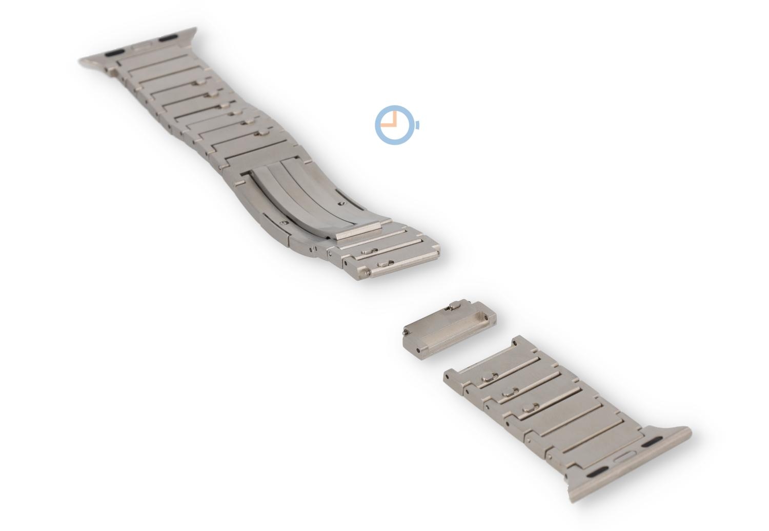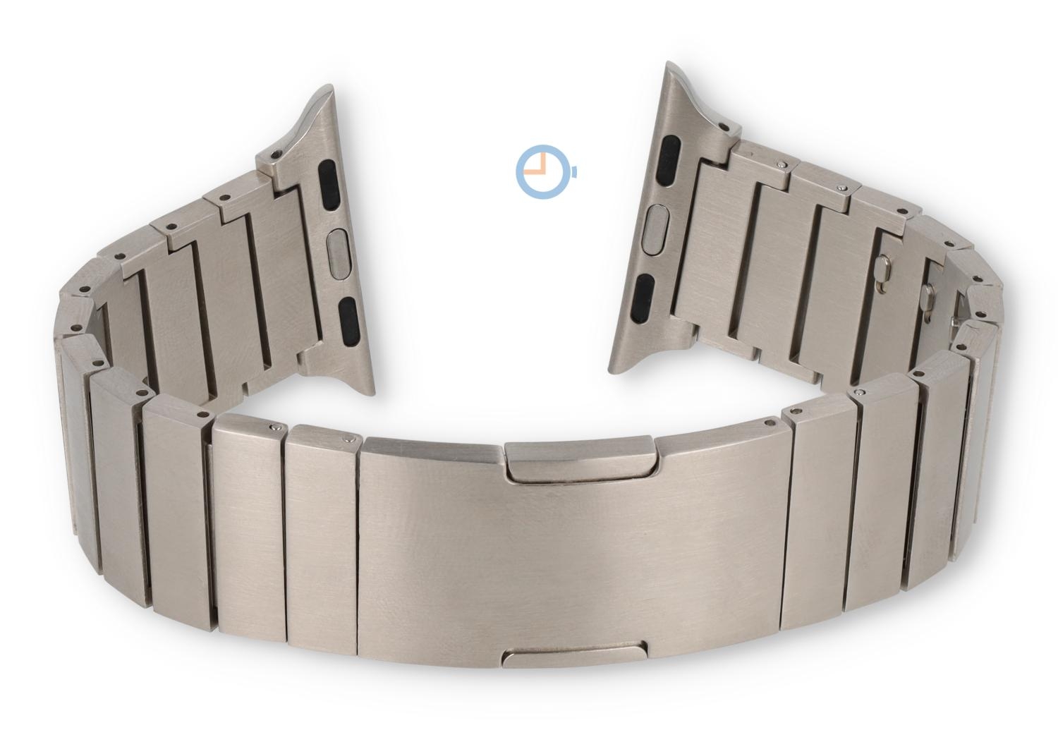 Titanium Apple watch band voor de 38/40/41/42mm - zilver. Geef jouw Apple Watch een stijlvolle look met deze titanium horlogeband. Dit stijlvolle horlogebandje is nikkelvrij en nu nog makkelijker in te korten. Een paar schakels hebben een Quick Switch systeem in de schakel, waardoor je hem eenvoudig kan los klikken.