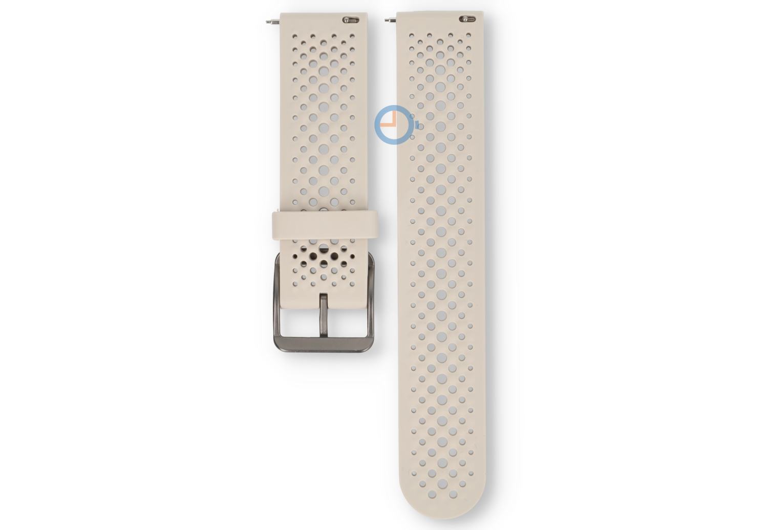 22mm beige siliconen horlogebandje - ademend en sportief | Dit universele siliconen bandje is ideaal voor iedereen die op zoek is naar comfort en een sportieve uitstraling. Het geperforeerde ontwerp zorgt voor optimale ventilatie, waardoor je pols koel blijft, zelfs tijdens de meest intensieve activiteiten. Het bandje is geschikt voor diverse horloges met een (rechte) bandbreedte van 22mm.