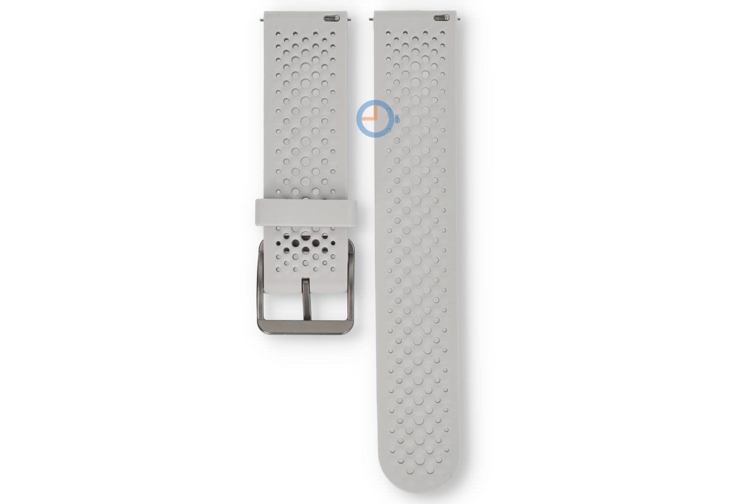 22mm grijs siliconen horlogebandje - ademend en sportief | Dit universele siliconen bandje is ideaal voor iedereen die op zoek is naar comfort en een sportieve uitstraling. Het geperforeerde ontwerp zorgt voor optimale ventilatie, waardoor je pols koel blijft, zelfs tijdens de meest intensieve activiteiten. Het bandje is geschikt voor diverse horloges met een (rechte) bandbreedte van 22mm.