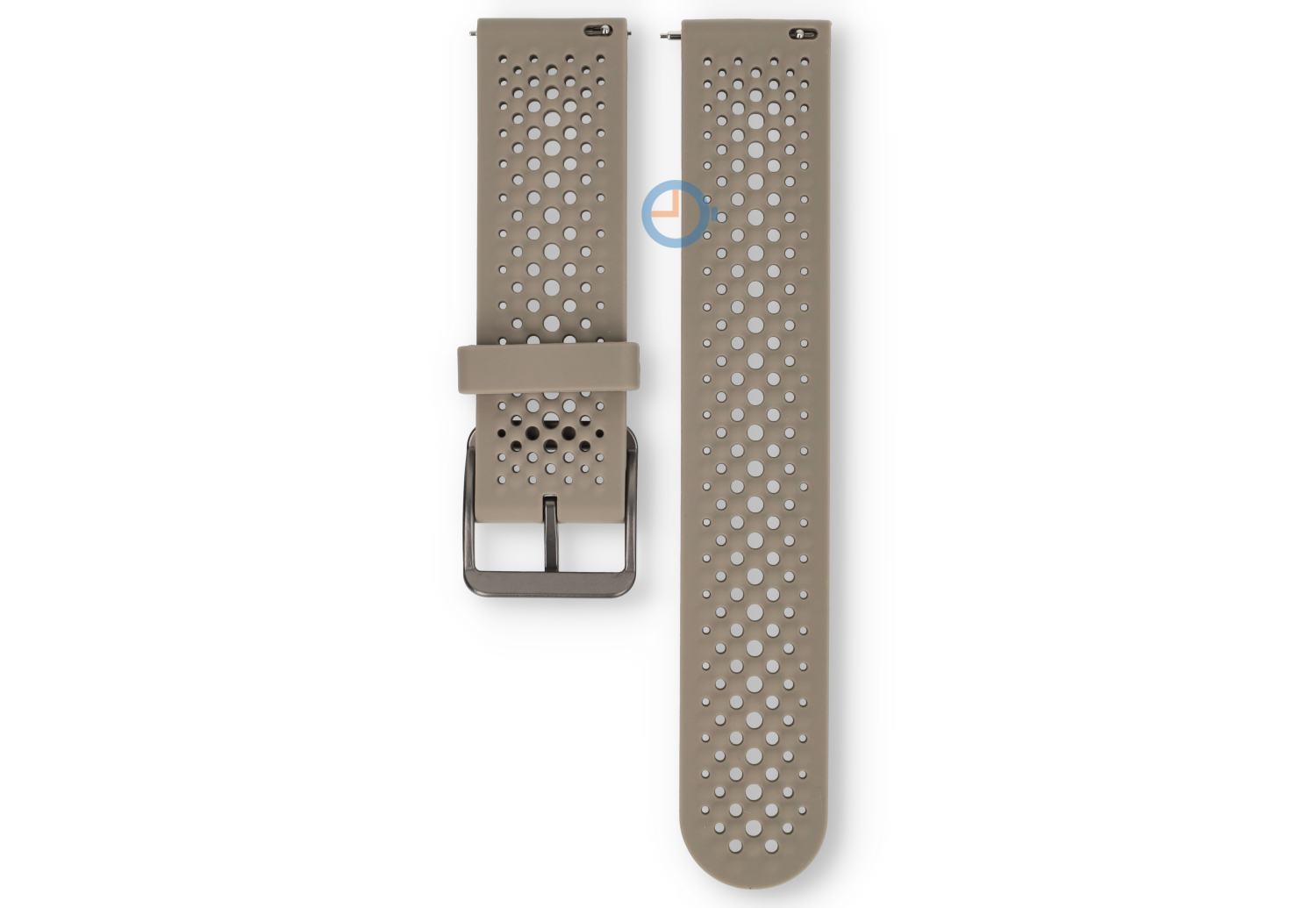22mm taupe siliconen horlogebandje - ademend en sportief | Dit universele siliconen bandje is ideaal voor iedereen die op zoek is naar comfort en een sportieve uitstraling. Het geperforeerde ontwerp zorgt voor optimale ventilatie, waardoor je pols koel blijft, zelfs tijdens de meest intensieve activiteiten. Het bandje is geschikt voor diverse horloges met een (rechte) bandbreedte van 22mm.