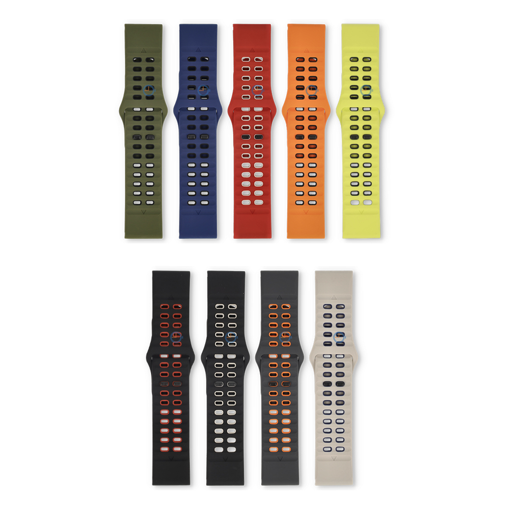 Comfortabele horlogeband zonder los flapje: tweekleurige siliconen horlogeband met tuck-under sluiting. Door het slimme ontwerp schuif je het uiteinde van de band onder de rest van het bandje, waardoor alles netjes op zn plek blijft.