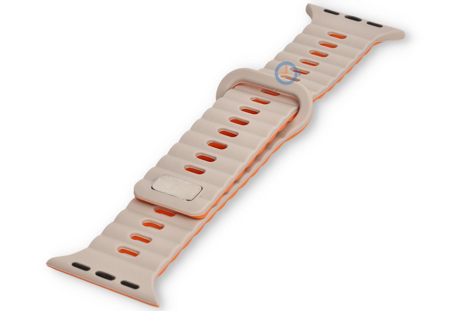 Bestel deze Apple Watch horlogeband voor een zorgeloze sportervaring en tegelijkertijd een mooie look. Het materiaal is RoHS-gecertificeerd en volledig water- en zweetbestendig, waardoor je zonder enige zorgen kunt sporten. De flexibiliteit van het materiaal zorgt voor een perfecte pasvorm rondom je pols, wat resulteert in ultiem comfort, zelfs tijdens de meest intensieve activiteiten. Sluit het bandje eenvoudig met een veilige druksluiting. Deze sluiting is zo sterk dat je niet bang hoeft te zijn om je bandje te verliezen. En het beste van alles, je kunt de maat aanpassen zonder gereedschap, waardoor beschadigingen worden voorkomen.