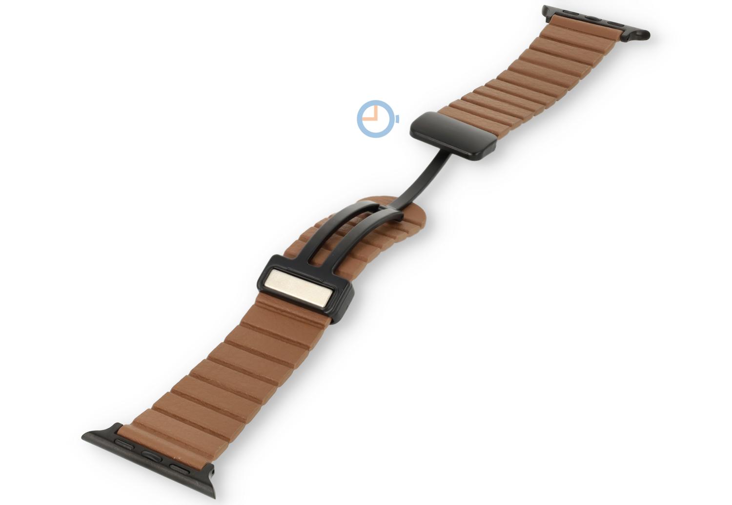 Leren horlogeband met magneetsluiting voor jouw Apple Watch 41mm - kleur: Brown. Bestel dit leren Apple Watch horlogebandje vandaag nog. Perfect voor al je dagelijkse bezigheden, zakelijke vergaderingen of feestelijke gelegenheden. Het horlogebandje is dun, soepel en makkelijk te dragen. Het hoogwaardige leer geeft een verfijnde uitstraling aan je Apple Watch, waardoor het een ideale metgezel is voor elke gelegenheid.
