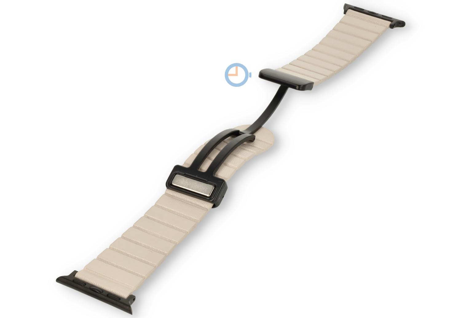 Leren horlogeband met magneetsluiting voor jouw Apple Watch 41mm - kleur: Offwhite. Bestel dit leren Apple Watch horlogebandje vandaag nog. Perfect voor al je dagelijkse bezigheden, zakelijke vergaderingen of feestelijke gelegenheden. Het horlogebandje is dun, soepel en makkelijk te dragen. Het hoogwaardige leer geeft een verfijnde uitstraling aan je Apple Watch, waardoor het een ideale metgezel is voor elke gelegenheid.