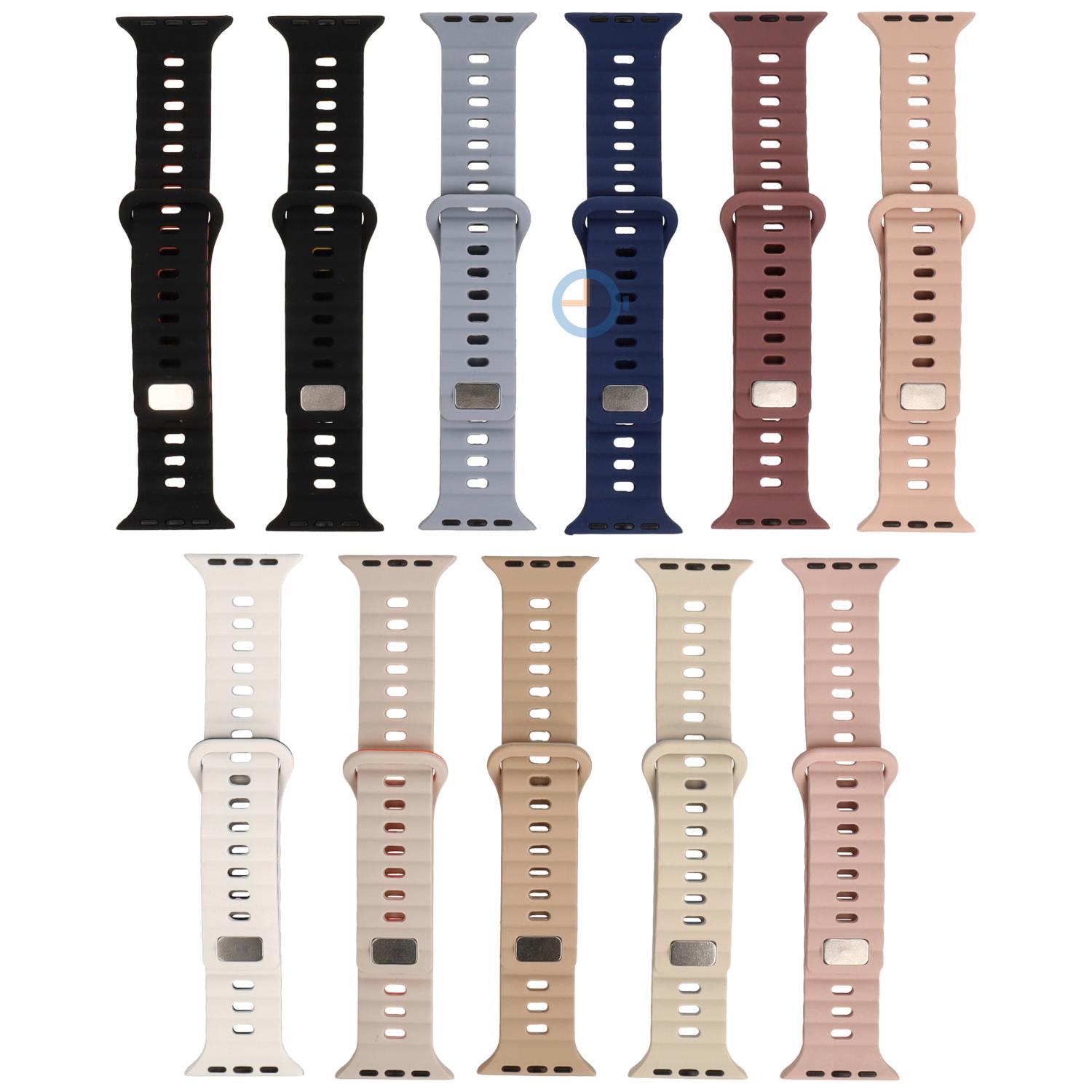 Bestel deze Apple Watch horlogeband voor een zorgeloze sportervaring en tegelijkertijd een mooie look. Het materiaal is RoHS-gecertificeerd en volledig water- en zweetbestendig, waardoor je zonder enige zorgen kunt sporten. De flexibiliteit van het materiaal zorgt voor een perfecte pasvorm rondom je pols, wat resulteert in ultiem comfort, zelfs tijdens de meest intensieve activiteiten. Sluit het bandje eenvoudig met een veilige druksluiting. Deze sluiting is zo sterk dat je niet bang hoeft te zijn om je bandje te verliezen. En het beste van alles, je kunt de maat aanpassen zonder gereedschap, waardoor beschadigingen worden voorkomen.