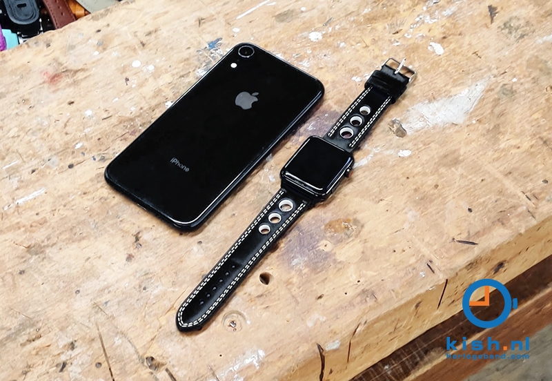 Premium Apple Watch bandje in combinatie met space black adapters. Dit gave horlogebandje geeft jouw horloge een unieke stijl. Het horlogebandje is tot detail afgewerkt en dat geeft een buitengewoon uitstekende kwaliteit. Deze horlogeband is aan de bevestigingszijde extra verstevigd, zodat uitscheuren bijna onmogelijk is. Dit zorgt voor een langere levensduur van het horlogebandje.