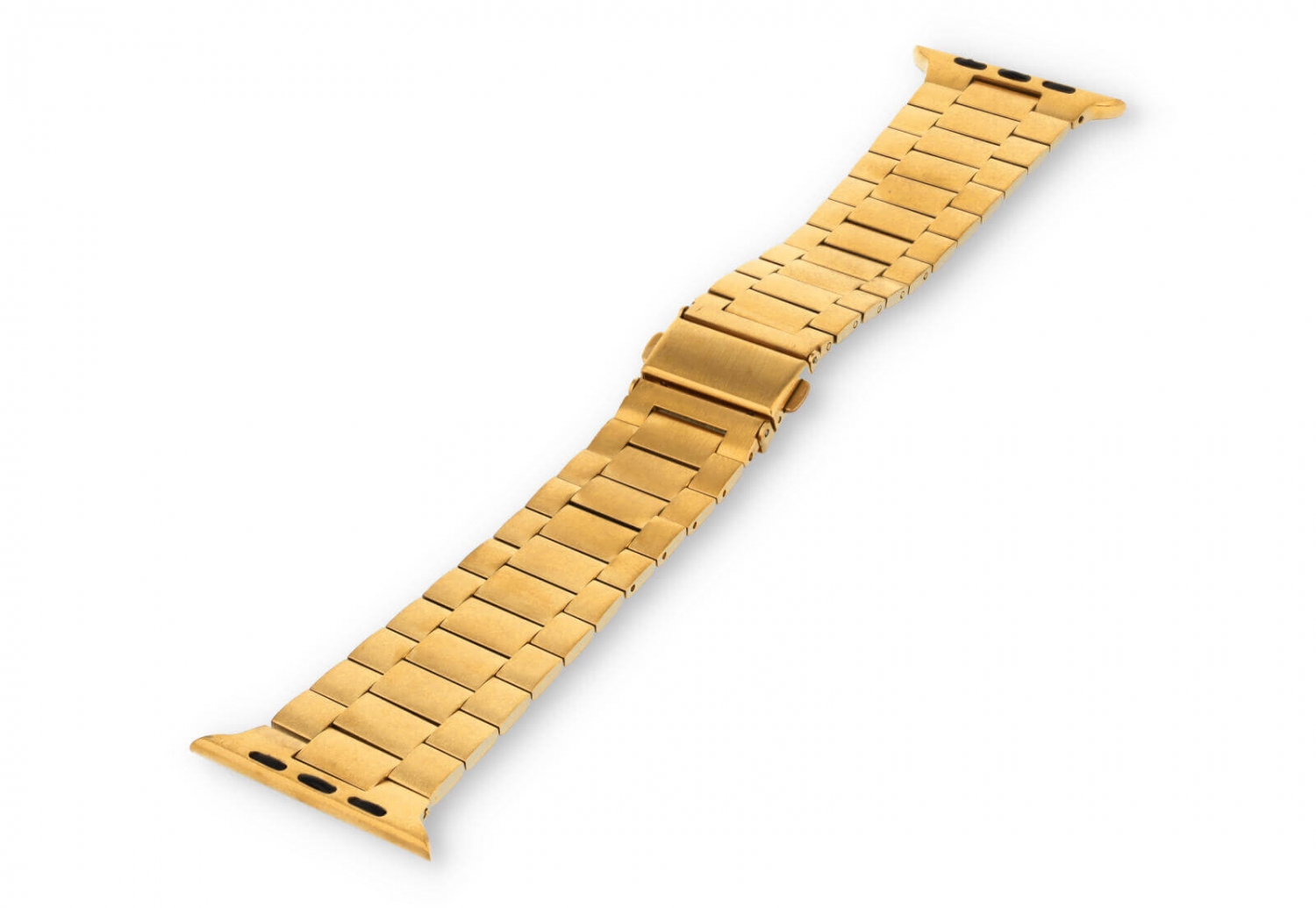 Stalen Apple Watch horlogeband 44/45/46/49mm - Goud. Dit stijlvolle horlogebandje is gemaakt van hoge kwaliteit roestvrij staal met een sterke vouwsluiting. Door de platte schakel is het horlogebandje een stuk lichter en voel je hem nauwelijks tijdens het dragen.