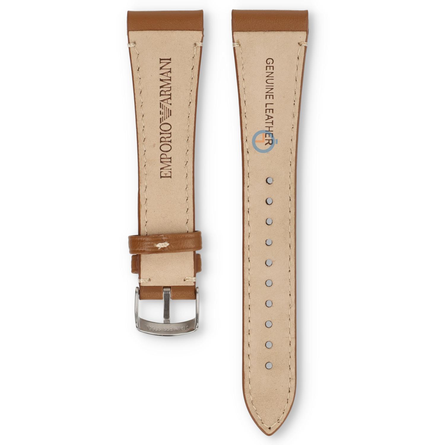 Horlogeband Armani AR0251. Originele cognacbruin lederen horlogeband voor de Armani AR0264. De horlogeband heeft een zilveren gespsluiting.