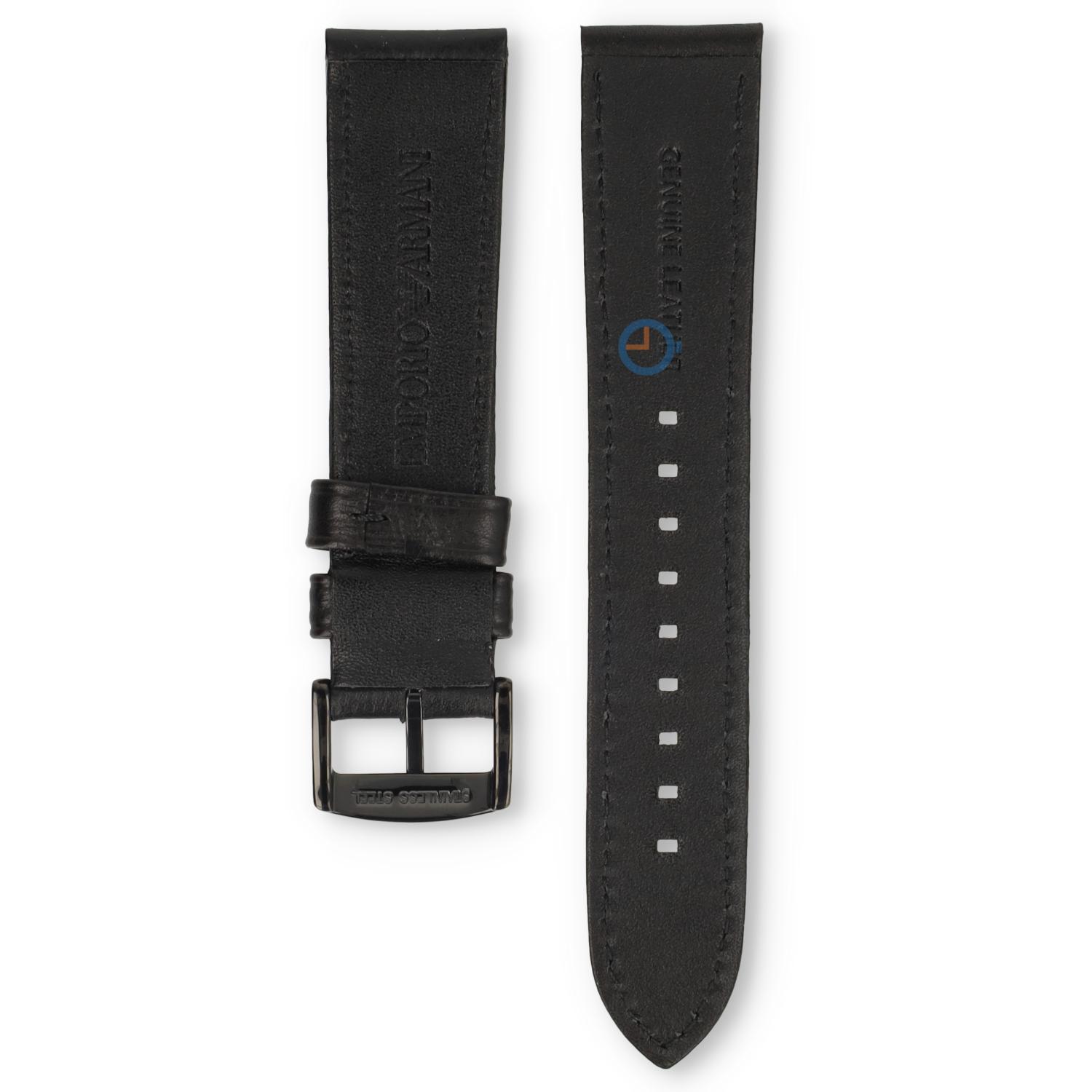 Arman horlogeband AR1732. Deze zwart lederen horlogeband is 20mm breed en heeft een zwarte gespsluitng. In de sluiting staat het Armani logo gestanst. U kunt deze horlogeband eenvoudig zelf vervangen, bekijk hiervoor de instrucitievideo in de shop.
