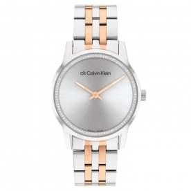 Calvin Klein horlogeband voor CK horloge 25000020. Dit originele bandje is gemaakt van zilver- en goudkleurig staal. De aanzet van deze band is recht en is daarom ook aan aandere horloges te monteren met dezelfde aanzetbreedte.
