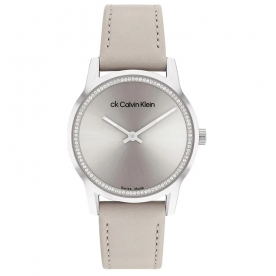 Calvin Klein horlogeband voor CK horloge 25000023. Dit originele bandje is gemaakt van grijs leer. De aanzet van deze band is recht en is daarom ook aan aandere horloges te monteren met dezelfde aanzetbreedte.