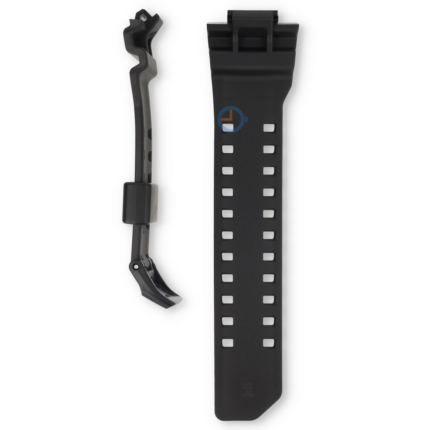 Casio G-Shock GA-400GB-1A4ER horlogeband. Deze zwarte kunststof horlogeband is eenvoudig aan uw horloge te monteren. Bekijk voor tips en trucs onze handige instructievideo.