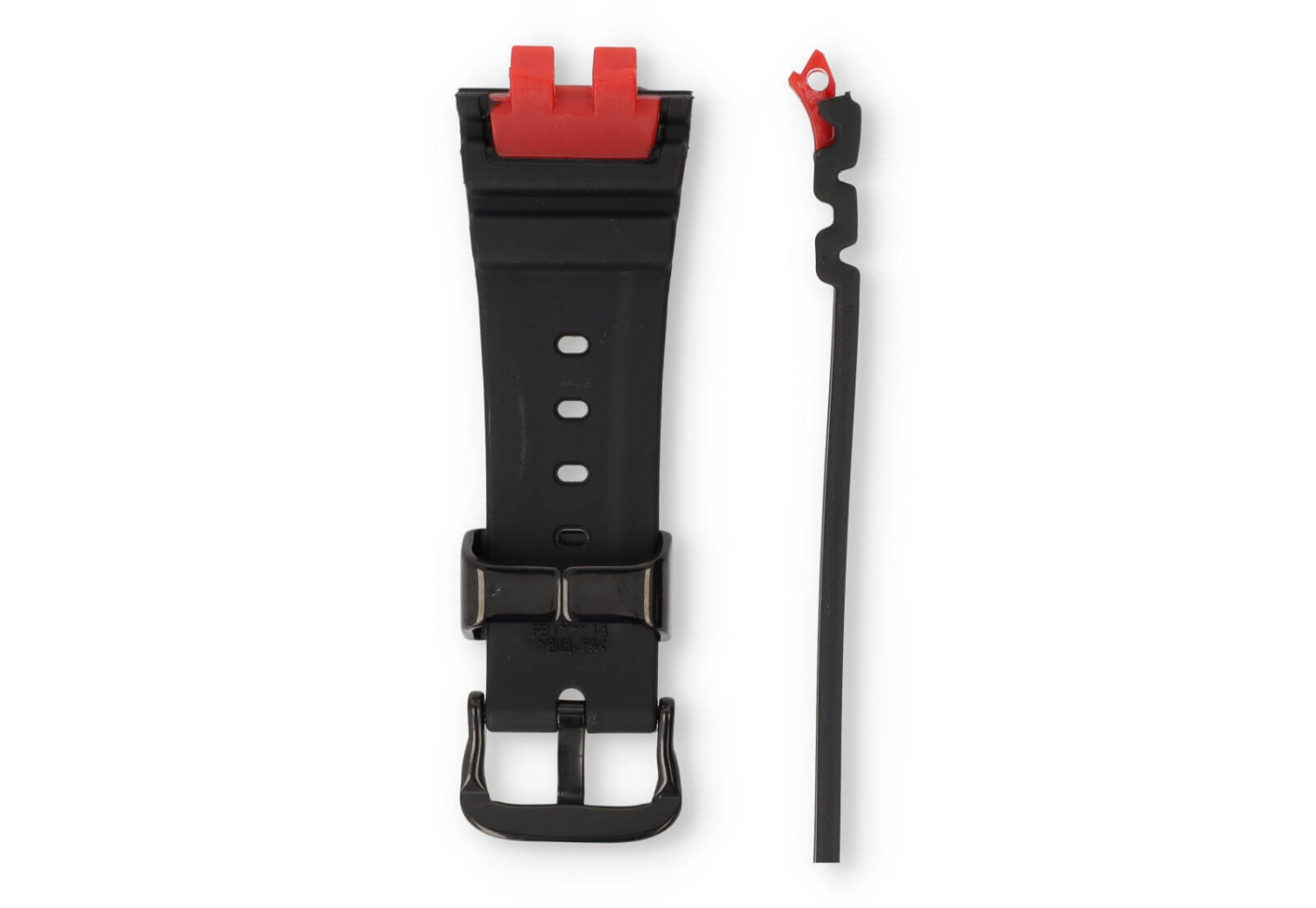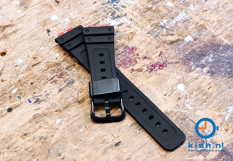 Casio G-Shock GMW-B5000 horlogeband zwart. Bij een stoer horloge hoort ook een gave horlogeband. Deze robuuste horlogeband is gemaakt van rubber en heeft een stoere zwart stalen lug. Je sluit het horlogebandje met een stevige zwarte gespsluiting. Wil je liever de originele gesp behouden? Dan kan je deze overzetten op dit horlogebandje. Gebruik hiervoor onze handige removal tool.