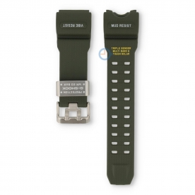 Casio G-Shock GWG-1000-1A3ER horlogeband. Deze groene kunststof horlogeband is origineel van Casio en heeft een edelstalen gespsluiting. U kunt de horlogeband eenvoudig zelf monteren, bespaar de extra kosten bij de juwelier en koop bij horlogeband.com