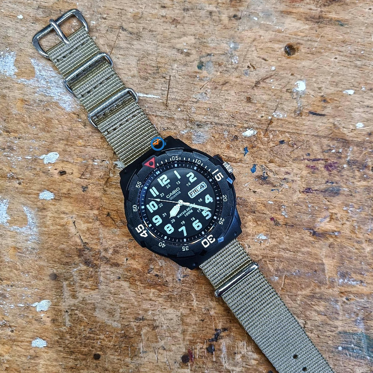 NASA-style nato bandje speciaal voor Casio MRW-200 - Dit hoogwaardige nato-style horlogebandje is een uitstekende keuze voor jouw Casio MRW-200H horloge. Het bandje is gemaakt van sterk geweven nylon, wat zorgt voor duurzaamheid en comfort. Het nylon voorkomt dat de horlogekast direct contact maakt met je huid, waardoor het horloge comfortabeler draagt en beter op zijn plaats blijft zitten. Dit maakt het bandje ideaal voor dagelijks gebruik, terwijl het tegelijkertijd zorgt voor extra stabiliteit.