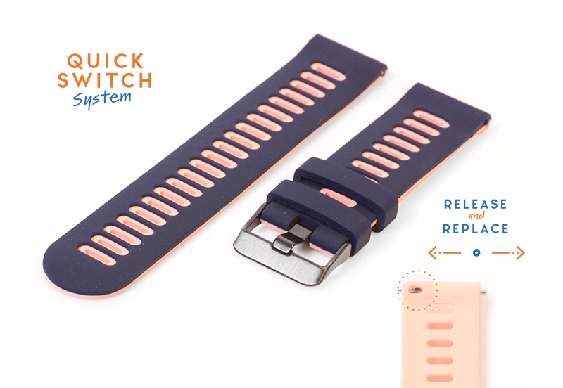 Dit bandje wordt compleet geleverd, inclusief Quick Switch-bevestiging en gespsluiting. Het bandje draag je op verschillende maten en is ook geschikt voor een kleinere pols. Wissel snel tussen verschillende horlogebandjes dankzij het geïntegreerde Quick Switch-systeem.