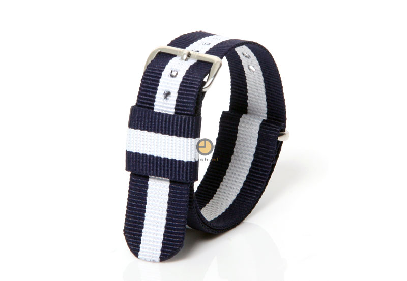 Nylon horlogebandje voor Daniel Wellington. Deze Daniel Wellington horlogeband is 20mm breed, en heeft een zilveren gesp.