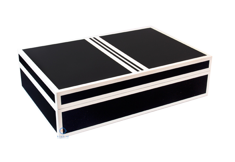 Materiaal buitenkant: hout, hoogglans zwart-wit