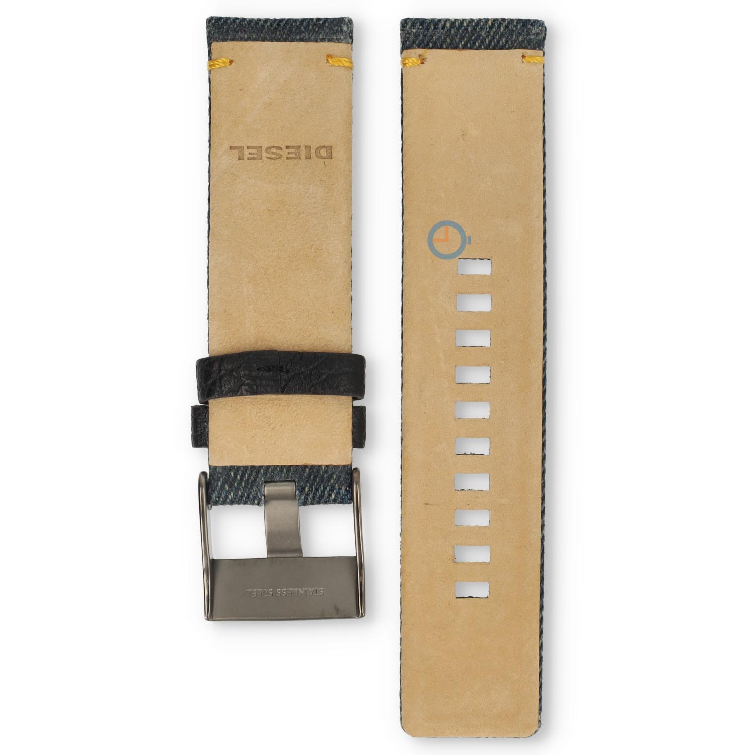 Diesel DZ1689 horlogeband. Deze echt lederen horlogeband heeft een jeans uiterlijk. De Diesel band is origineel en eenvoudig te plaatsen aan uw Diesel DZ1689 horloge.