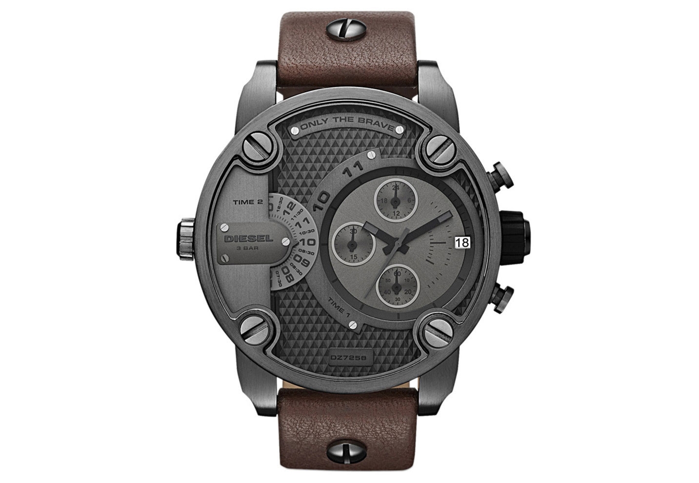 Diesel horlogeband. Deze bruin lederen horlogeband is een originele band voor de Diesel Little Daddy XL DZ7258. Deze band bevestigt u met een schroefbevestiging, de schroeven worden meegeleverd. Deze Diesel horlogeband past tevens op alle Diesel Little Daddy XL horloges.