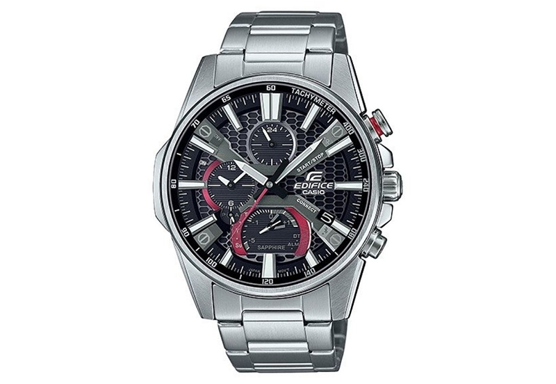 Vervangende, originele horlogeband voor Edifice EQB-1200HG-1A. Deze horlogeband is gemaakt van staal en wordt gesloten met een vouwsluiting. Door de recht aanzet is het mogelijk om deze horlogeband ook aan andere horloges met een 22mm aanzet te bevestigen.