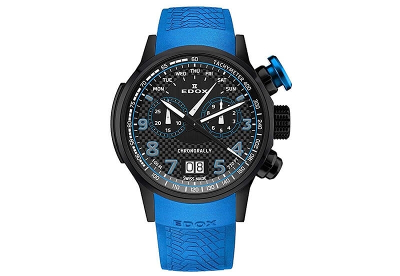 Originele Edox Chronorally 38001 horlogeband. Deze horlogeband heeft een speciale ronde aanzet bij de kast, waardoor hij alleen geschikt is voor de Edox Chronorally modellen. Deze blauw rubberen band is 25mm breed en word met spring bars an jouw horloge bevestigt. Het horlogebandje wordt excl. sluiting geleverd.