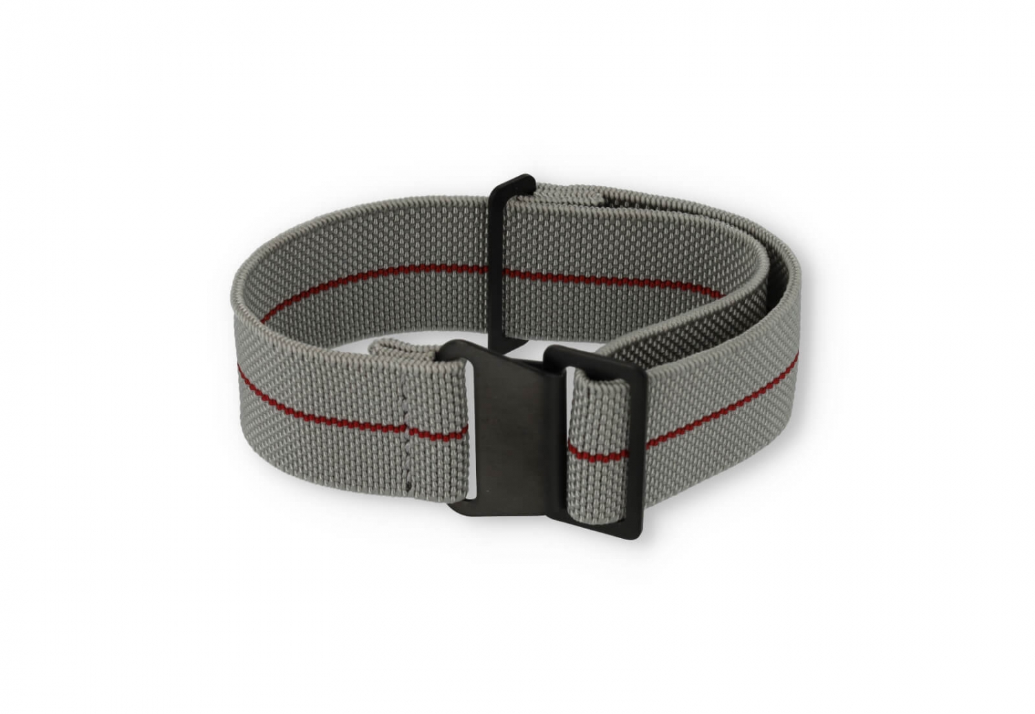 Horlogebandje van elastisch nylon voor horloges met een 20mm aanzet. Deze horlogeband is gemaakt van de onderdelen van een echte parachute en werd in de jaren 60 en 70 veel gedragen door de marine. Het kan dan ook niet anders dat dit horlogebandje ijzersterk is. Ideaal voor buitenactiviteiten en ruwe omstandigheden. De stevige haaksluiting is gemaakt van 316 roestvrij staal en sluit je makkelijk en veilig in een handomdraai.