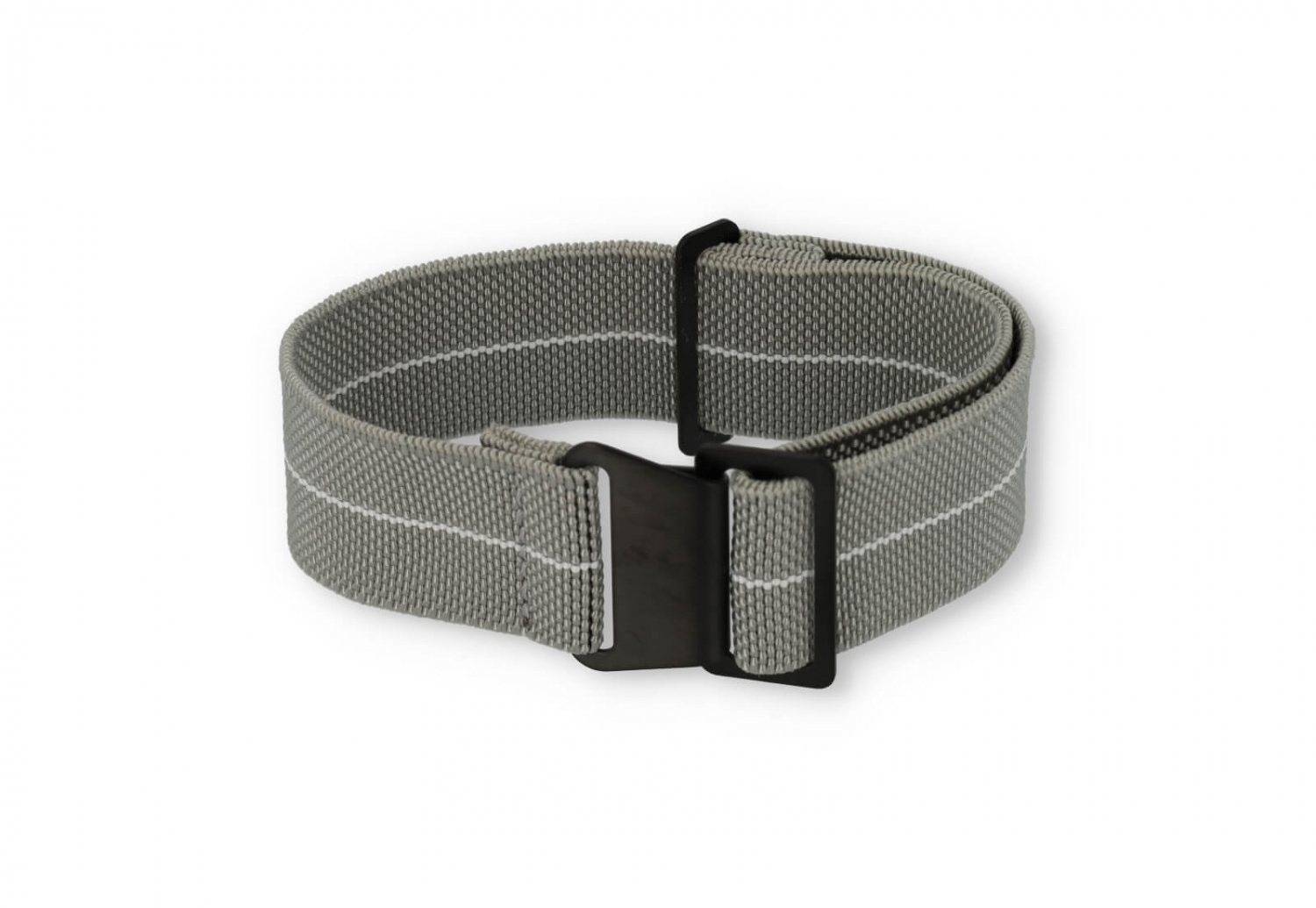 Horlogebandje van elastisch nylon voor horloges met een 20mm aanzet. Deze horlogeband is gemaakt van de onderdelen van een echte parachute en werd in de jaren 60 en 70 veel gedragen door de marine. Het kan dan ook niet anders dat dit horlogebandje ijzersterk is. Ideaal voor buitenactiviteiten en ruwe omstandigheden. De stevige haaksluiting is gemaakt van 316 roestvrij staal en sluit je makkelijk en veilig in een handomdraai.
