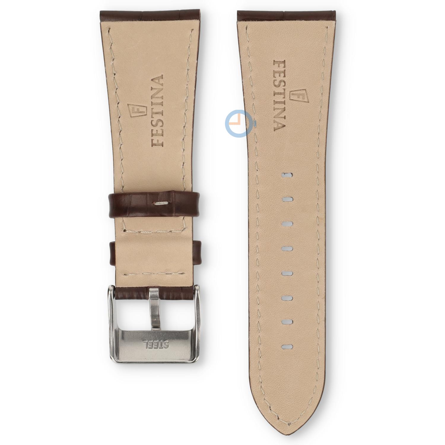 Bestel nu deze originele Bandje voor Festina horloge F16235/G en draag jouw horloge weer als nieuw. Deze horlogeband is gemaakt van leer en wordt geleverd inclusief originele gesp. Dit originele Festina horlogebandje is breed en wordt bevestigd met slagpinnen Wist je dat je zelf makkelijk de horlogeband kunt vervangen? Check daarvoor onze instructies voor het vervangen van een horlogeband.