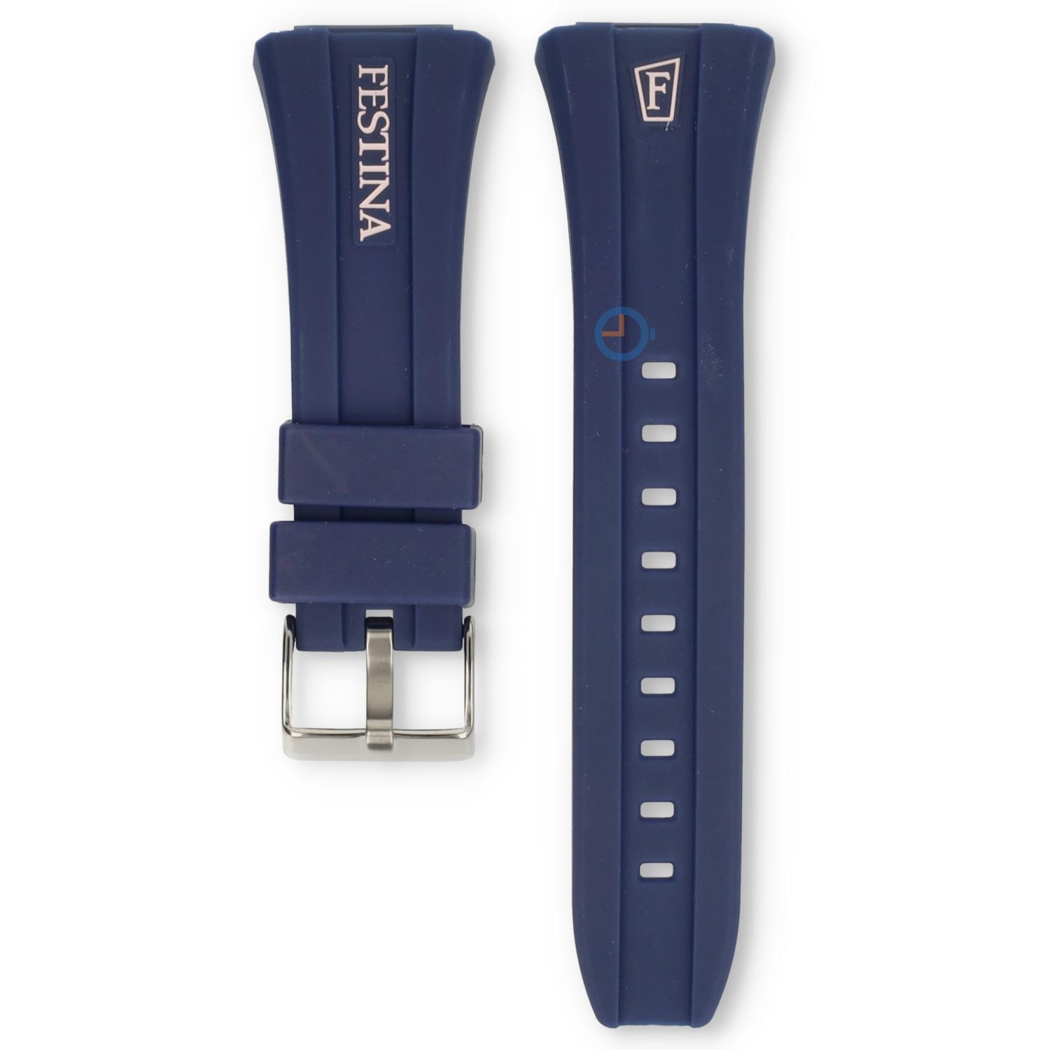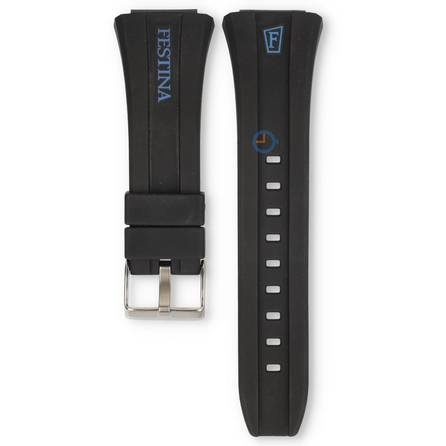 Bestel nu deze originele Bandje voor Festina horloge F6715/7 en draag jouw horloge weer als nieuw. Deze horlogeband is gemaakt van siliconen en wordt geleverd inclusief originele gesp. Dit originele Festina horlogebandje is breed en wordt bevestigd met slagpinnen Wist je dat je zelf makkelijk de horlogeband kunt vervangen? Check daarvoor onze instructies voor het vervangen van een horlogeband.