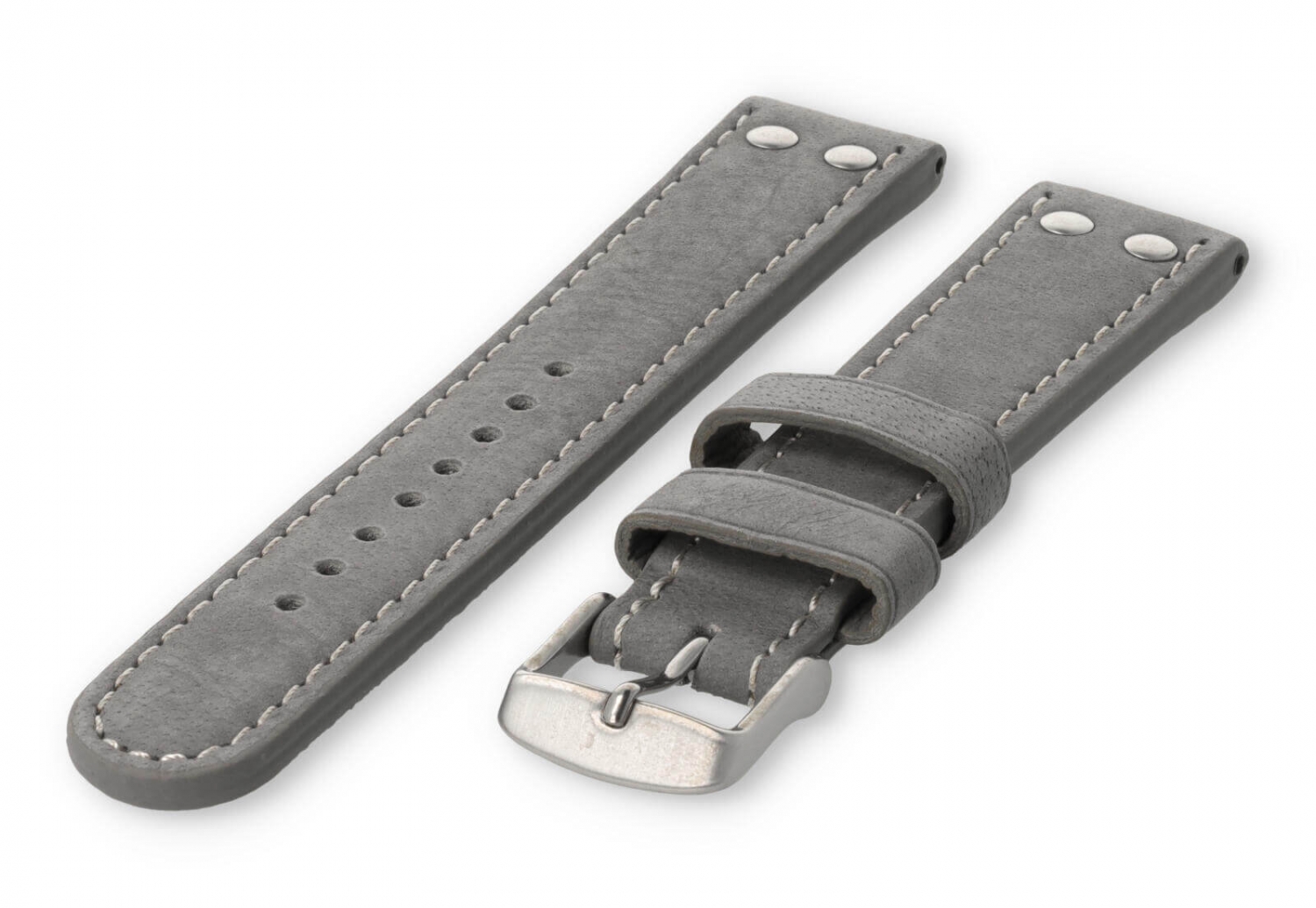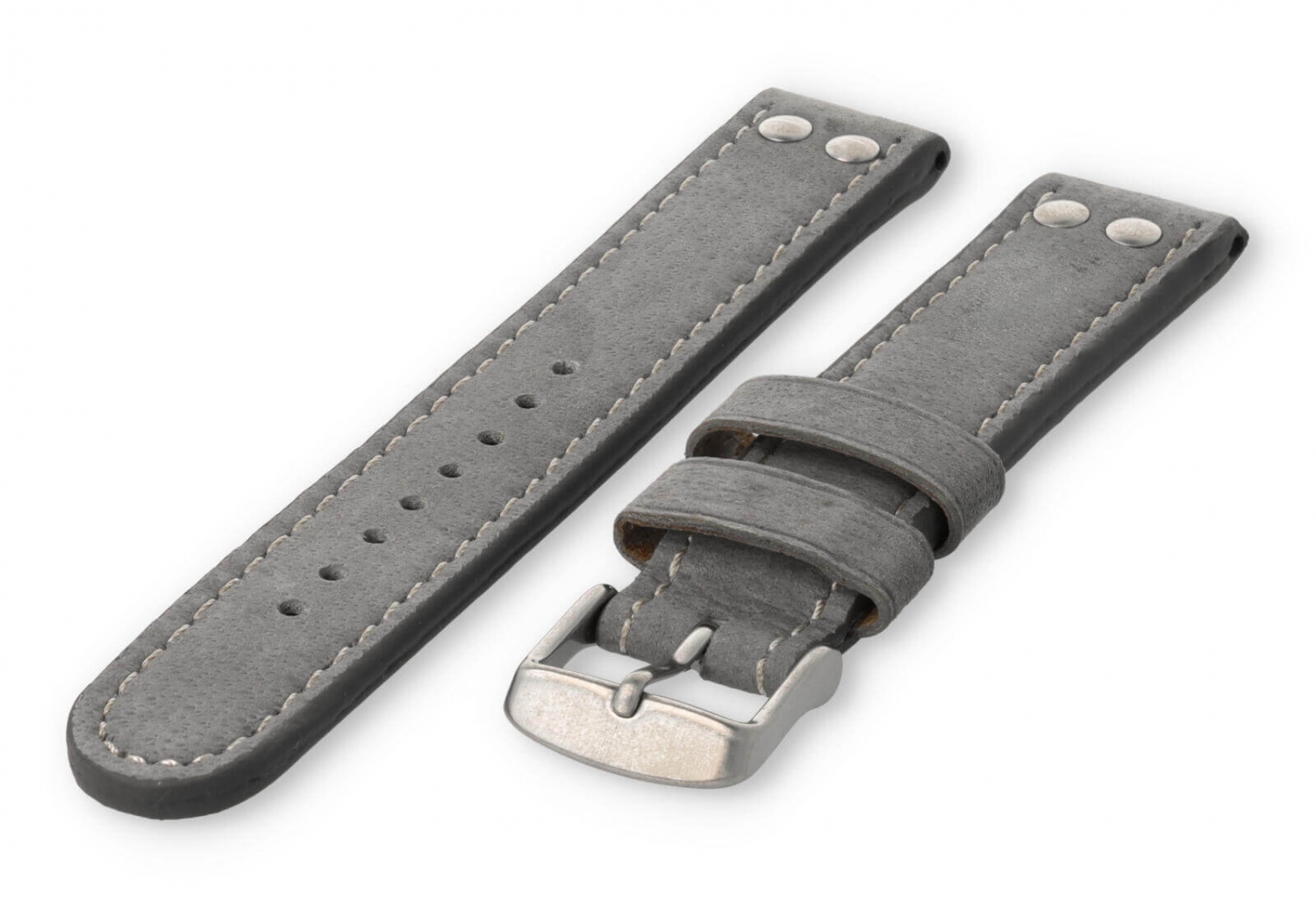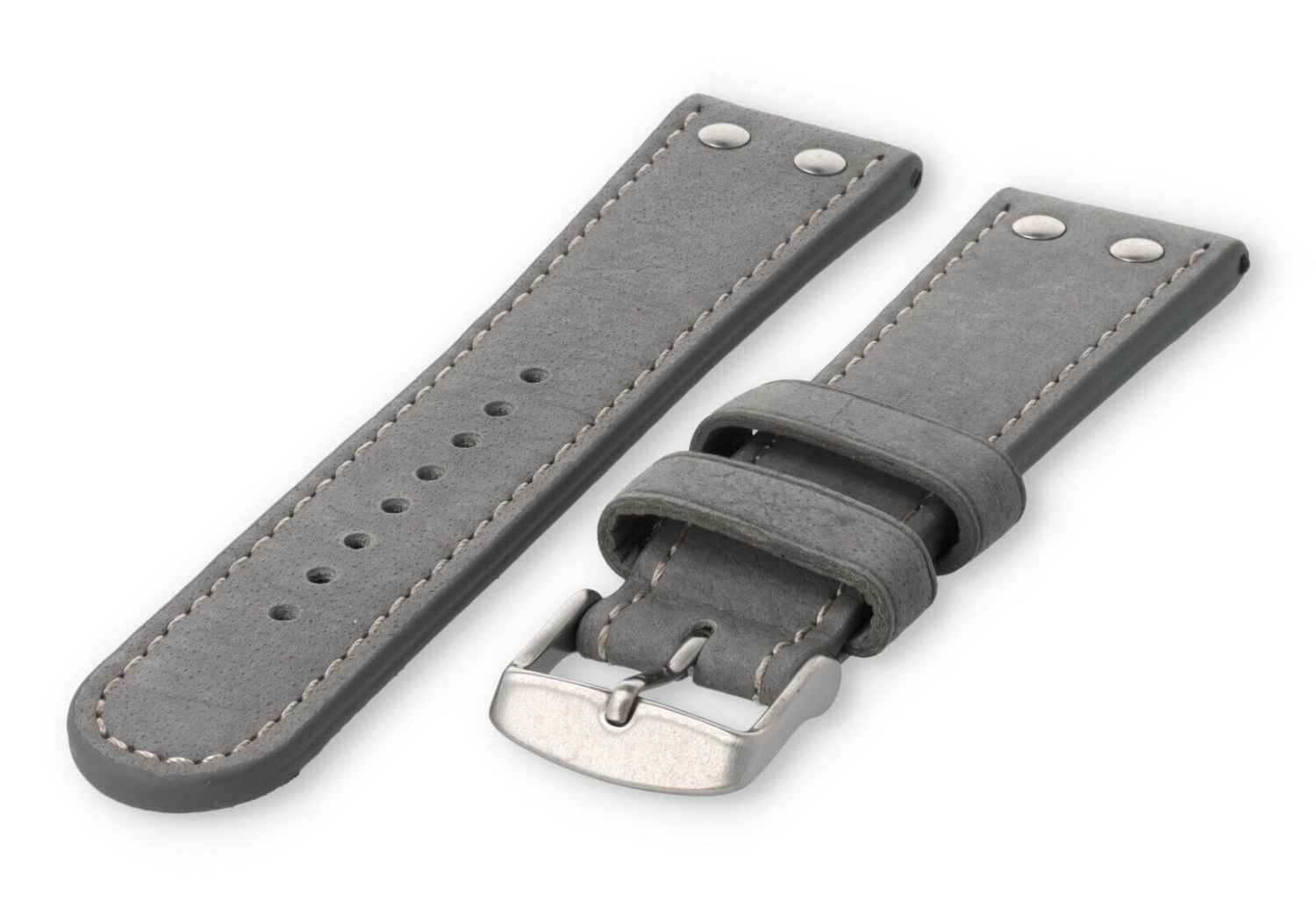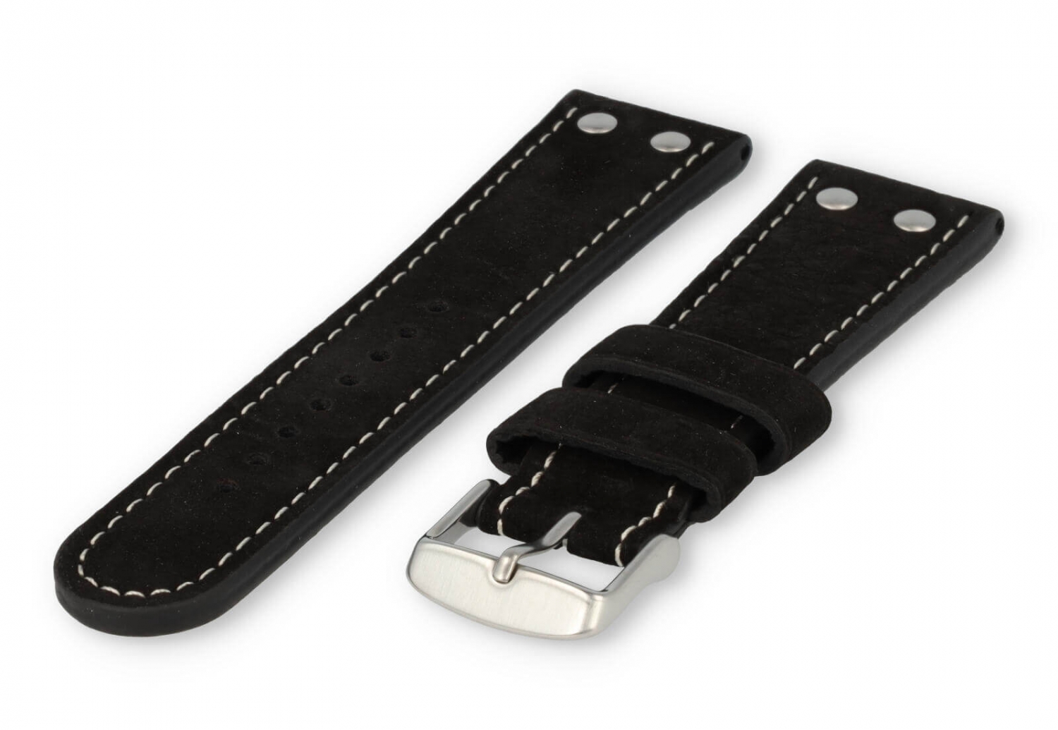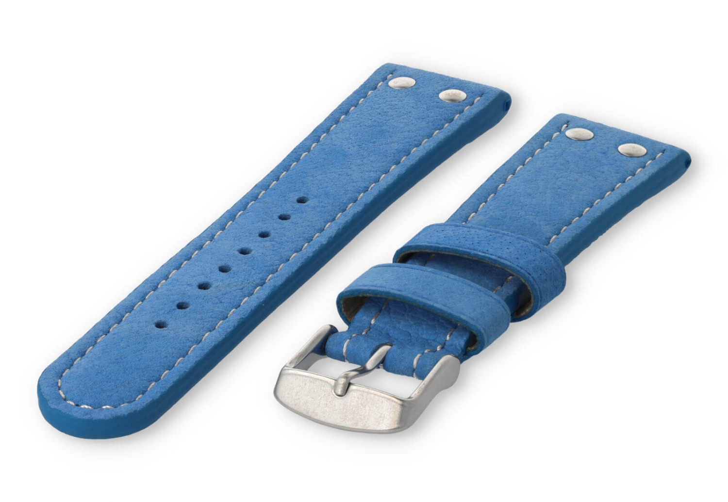Dit extra dikke horlogebandje is gemaakt van 2 soorten leer. De bovenzijde is van waterbuffelleer en de onderkant van kalfsleer nubuk. De bovenkant heeft een matte afwerking met een grof stiksel en de sluiting is van geborsteld roestvrij staal. Je zult merken dat het bandje steeds mooier wordt naarmate het dragen.