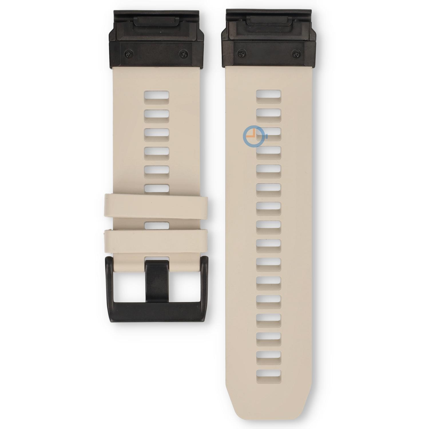 Het flexibele fluorrubber voelt stevig maar comfortabel aan op de huid, ook tijdens lange workouts. De band heeft een afmeting van 75x120mm en wordt geleverd met een robuuste zande stalen adapter en sluiting die naadloos past bij de stijl van je horloge. Dankzij de QuickFit bevestiging wissel je de band in een paar seconden.