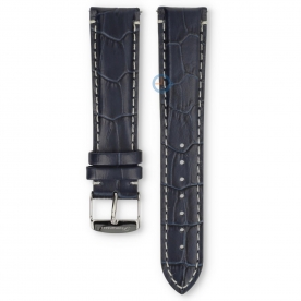 Fromanteel horlogeband blauw. Deze blauw lederen horlogeband is afgewerkt met wit stiksel. De band is 20mm breed en heeft een gespsluiting in de gesp staat het Fromanteel logo gestanst.