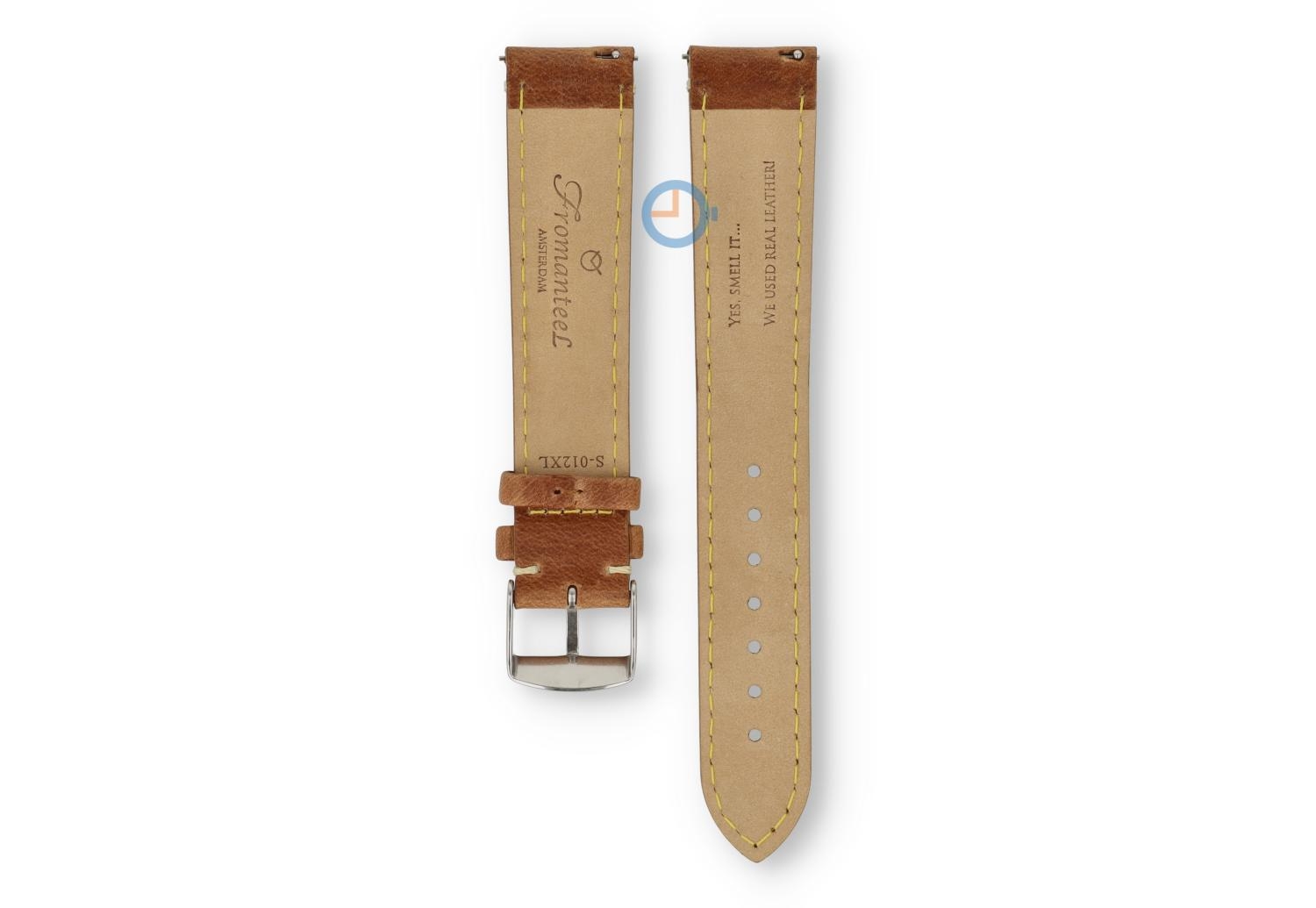 Fromanteel Vintage Light Brown Strap XL | 20mm breed vintage lichtbruin XXL horlogebandje met Quick Switch - vernieuw of verfris je horloge met dit kwaliteits bandje van Fromanteel. Origineel en stijlvol. Het zachte leer vormt zich moeiteloos naar je pols, wat zorgt voor een natuurlijke pasvorm.Voeg een vleugje luxe toe aan je dagelijks leven met deze olijfgroene leren horlogeband van Fromanteel. Of je nu op kantoor bent, een speciale gelegenheid bijwoont, of gewoon geniet van een dagje uit, deze horlogeband zal ongetwijfeld indruk maken en je elegantie versterken.