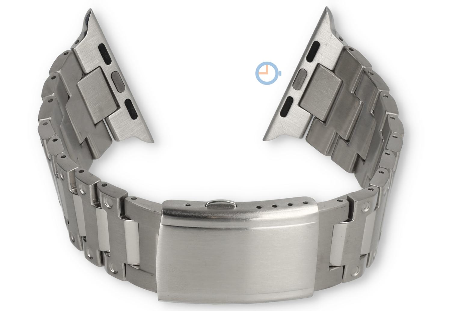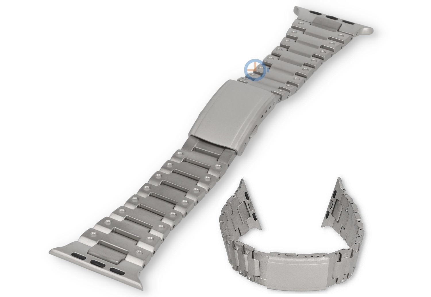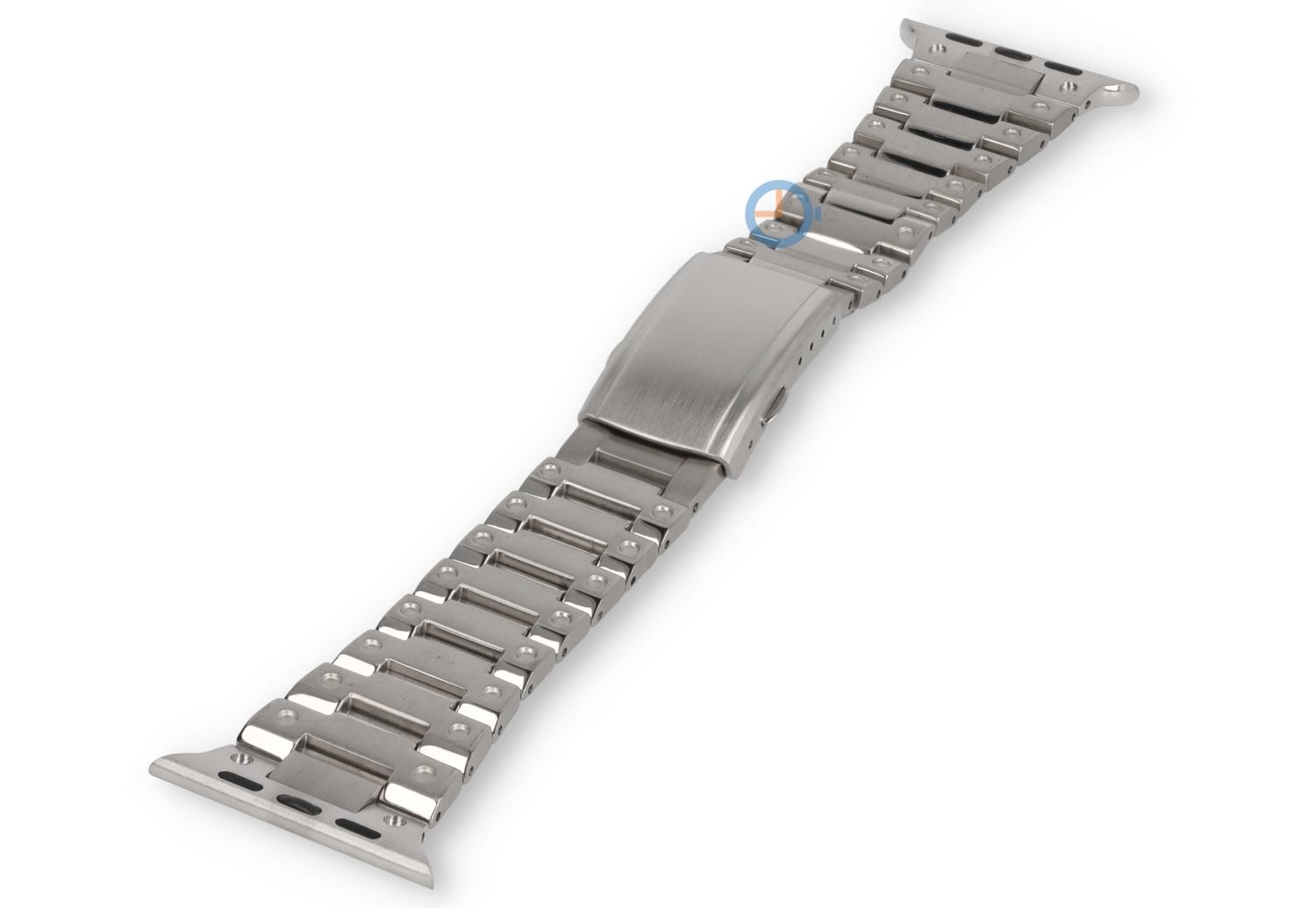 Dit Apple bandje is geschikt voor Apple Watch modellen: 44mm, 45mm, 46mm en 49mm. Het horlogebandje is extreem sterk en toch superlicht voor maximaal draagcomfort. De horlogeband is verstelbaar in lengte, het is 180mm lang en eenvoudig in te korten met 10 verwijderbare schakels. Je ontvangt de band inclusief vouwsluiting met drukkers en extra belangrijk: deze Apple watch horlogeband is RoHS-gecertificeerd: veilig, milieuvriendelijk en vrij van schadelijke stoffen.