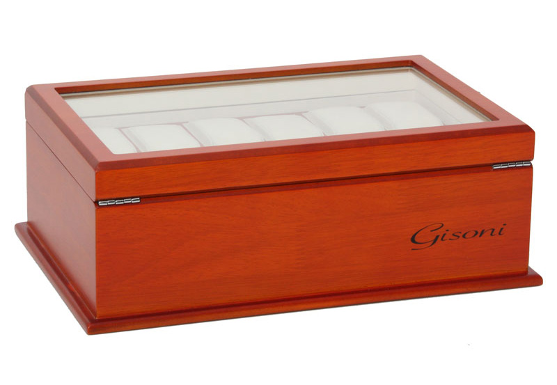 De Gisoni Tollare is een exclusieve horlogekist voor maarliefst 22 horloges, verdeeld over 2 plateaus. Één plateau met kussens en één plateau met vakjes. De ruimte tussen beide plateaus en de kussens afzonderlijk is voldoende om ook grotere horloges schadevrij op te bergen. Het onderste plateau is tevens te gebruiken voor het schadevrij opbergen van uw sieraden. Voorzien van degelijke sluiting. Verkrijgbaar in de kleuren ebony, lichtbruin en bordeaux.