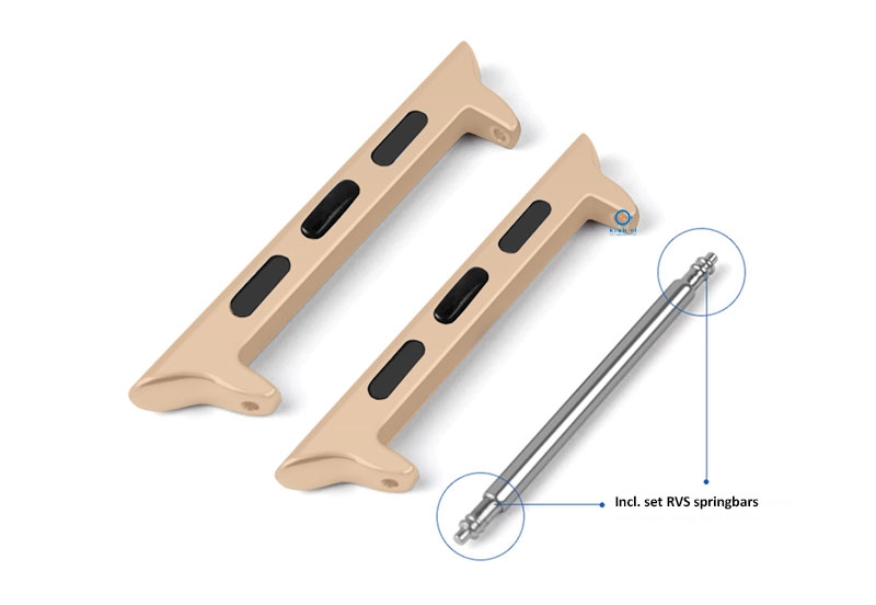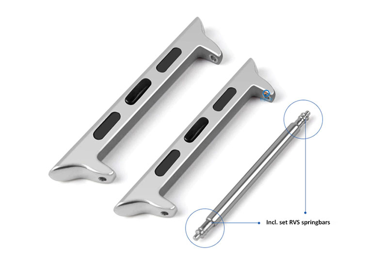 Je plaatst in een handomdraai een 20mm horlogeband aan deze adapter. Niet alleen gewone horlogebanden, maar ook horlogebanden met een Quick Switch systeem. De adapters worden geleverd incl. RVS spring bars.