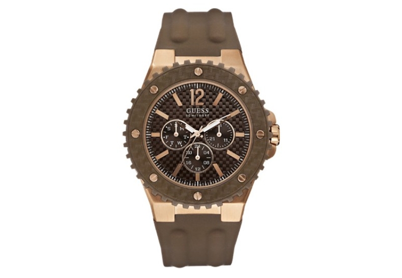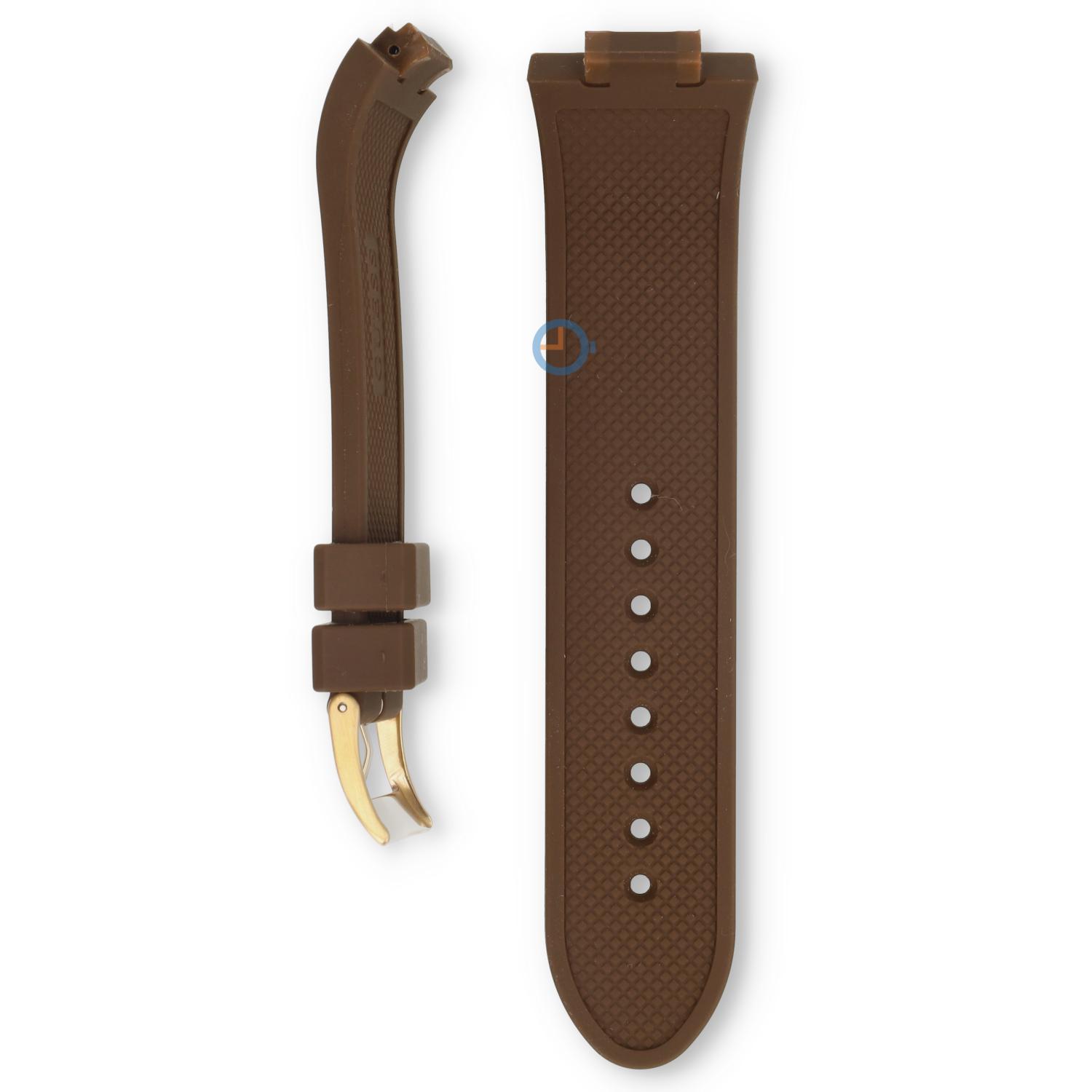 Originele Guess horlogeband W12653G2. Deze bruin rubberen horlogeband heeft een roségouden gespsluiting. Deze horlogeband heeft een speciale aanzet en daardoor alleen passend aan de Guess W12653 horloges. Eenvoudig te bevestigen met een slagpin.