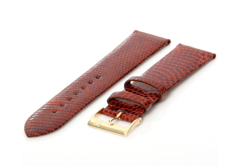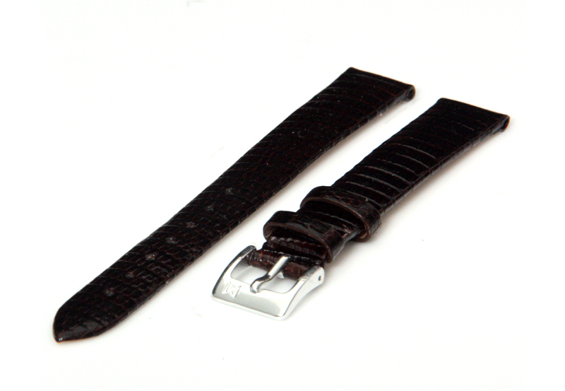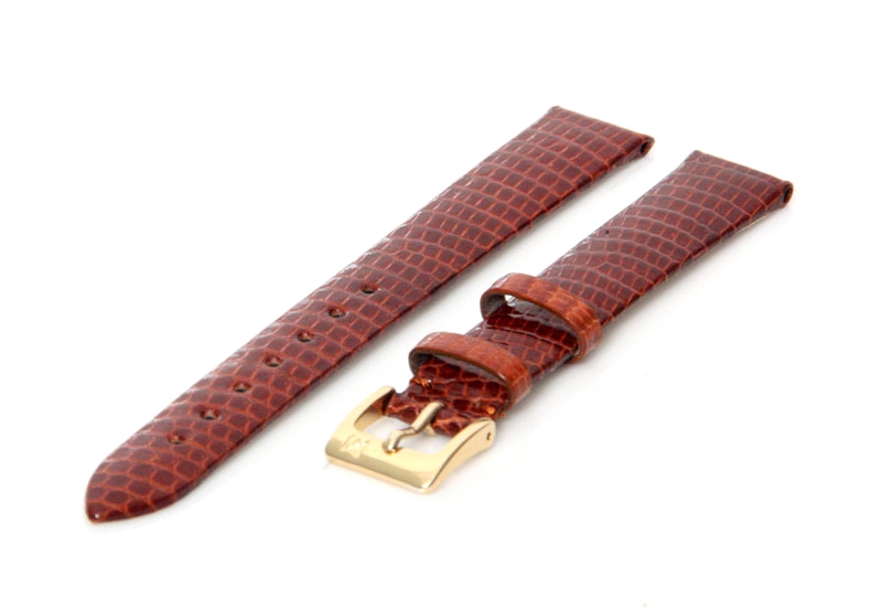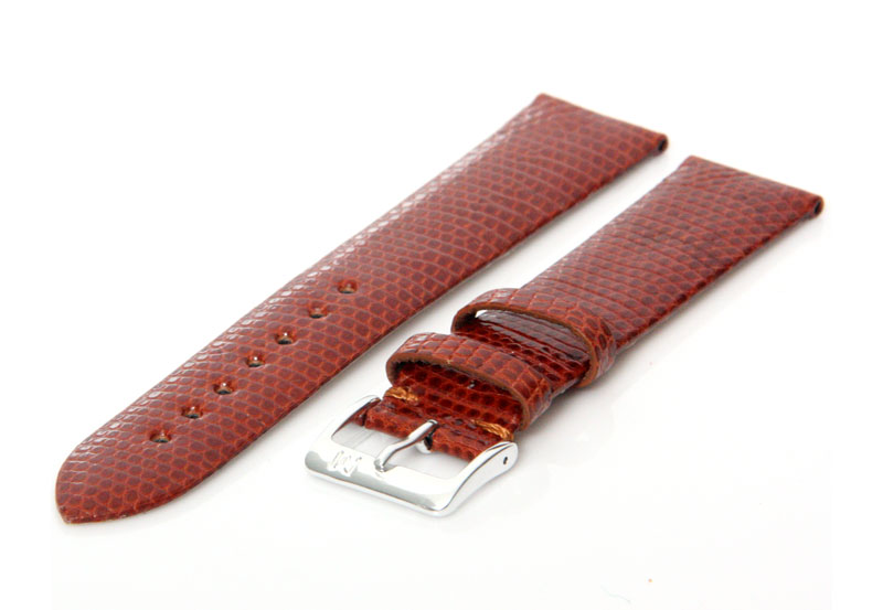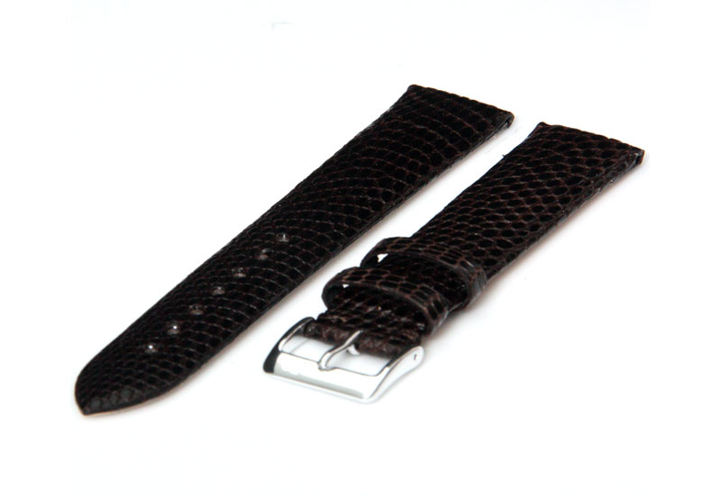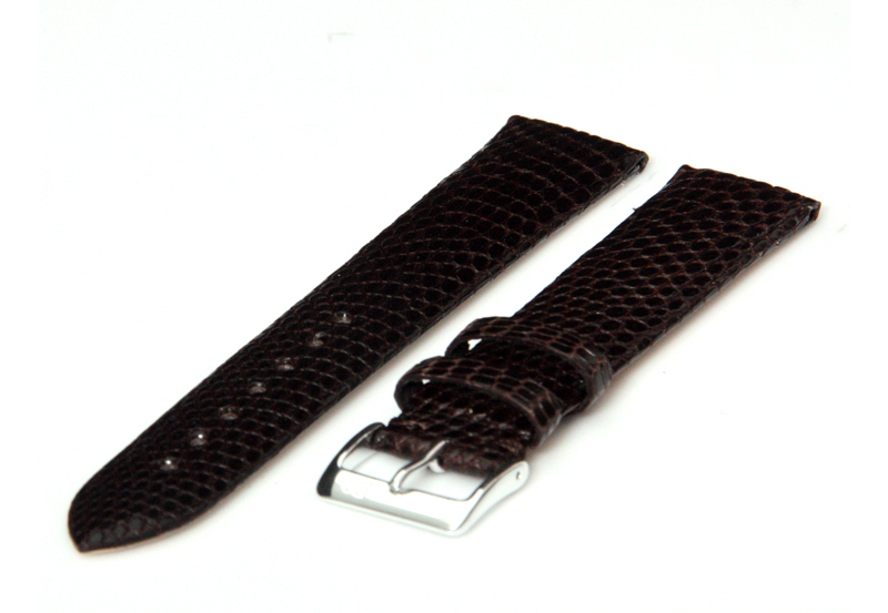 Horlogeband 12mm bruin leer extra large. Deze horlogeband is handgemaakt van echt hagedissen leer. De band is bruingekleurd en heeft een zilverkleurige stalen gesp.