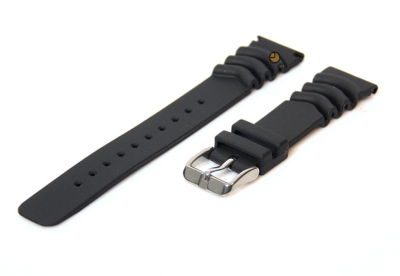 Rubberen horlogeband 16mm. Deze zwart rubberen horlogeband is uitermate geschikt voor duik en sporthorloges. De horlogeband is 16mm en heeft een zilveren gespsluiting. Deze rubberen horlogeband heeft een universele kast aanzet en is eenvoudig te bevestigen aan uw horloge.