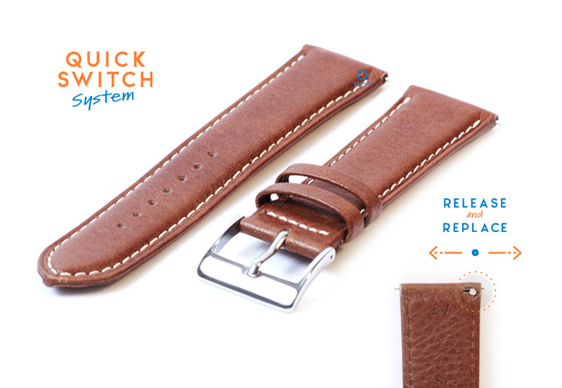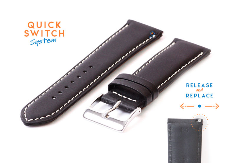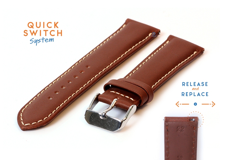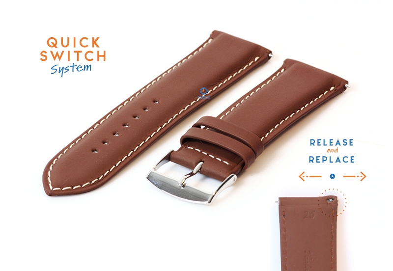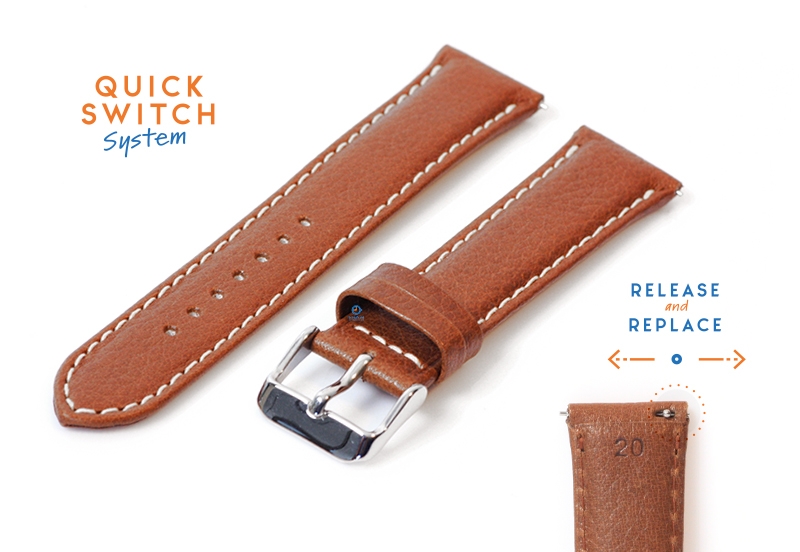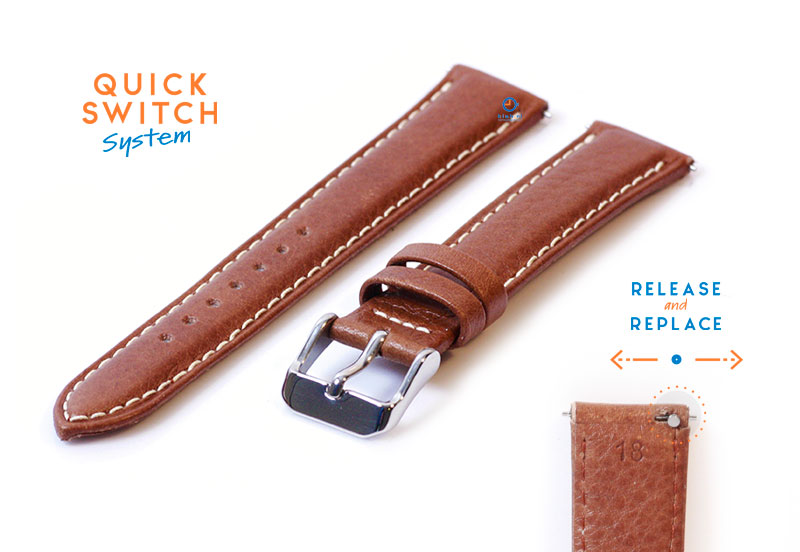 Universeel horlogebandje gemaakt van echt rundleder. Deze horlogebandjes hebben een gladde structuur en zijn milieuvriendelijk geproduceerd zonder toevoeging van chrome en zelfklevende oplosmiddelen. De insteek is gemaakt van 100 katoen. Het horlogebandje is met de hand gestikt, zodat het tot in de puntjes is afgewerkt.
